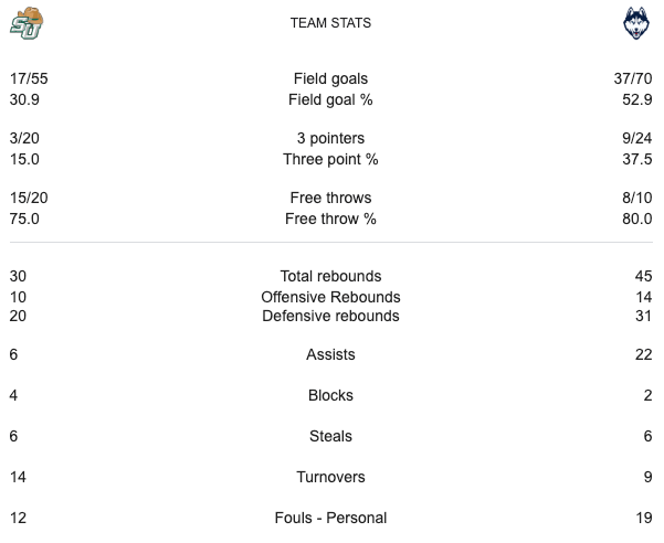 #16 Stetson vs #1 UConn – UConn had a thirty three point lead at halftime. With five minutes left in the game UConn had a thirty nine point lead with five minutes left in the game. UConn had a thirty eight point lead with just over a minute to go. The final score was 91-52 UConn. UConn dominated this game. It is a huge statement for them to win their first game like this. UConn advanced to the Second Round. Stetson has been eliminated. #1 UConn will play #9 Northwestern in the Second Round.