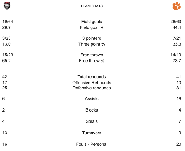 #11 New Mexico vs #6 Clemson – Clemson had a fourteen point lead at halftime. With four minutes to go Clemson had a twenty point lead. Clemson had a twenty two point lead with just under a minute to go. The final score was 77-56 Clemson. Clemson advanced to the Second Round. New Mexico was eliminated as another Mountain West Conference team fails to win a game in March Madness. #6 Clemson will play #3 Baylor in the Second Round.