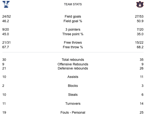 #13 Yale vs #4 Auburn – Auburn had a seven point lead at halftime. With five minutes to go Auburn had a six point lead. Yale was able to tie the game with two minutes left in the game. Yale had a four point lead with only fourteen seconds left in the game. Auburn cut the lead down to two points but a block and a missed three point shot let Yale hold on for the upset. Yale won the game 78-76 and advanced to the Second Round. #13 Yale will play #5 San Diego State in the Second Round.