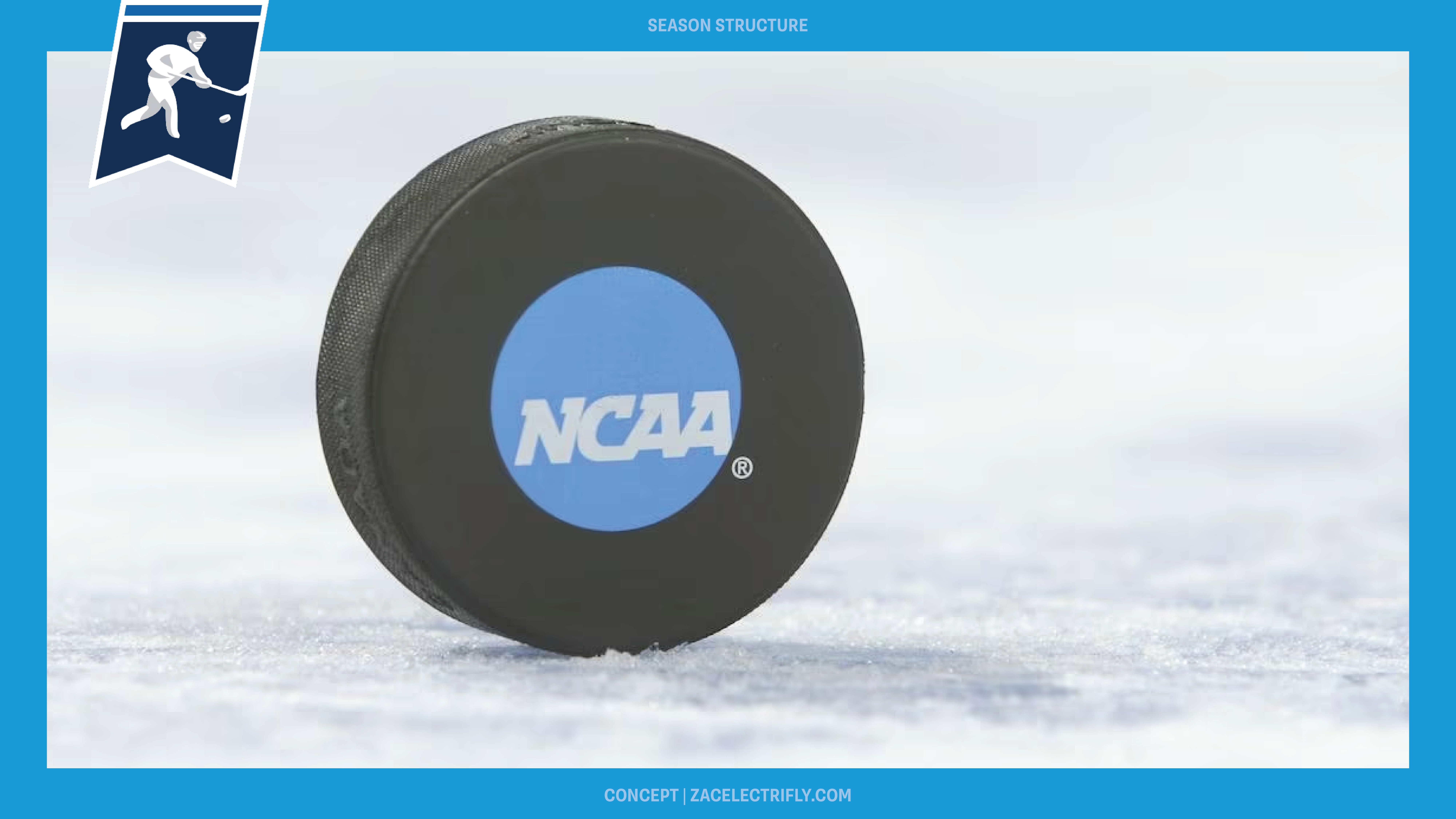 For this concept it is the 2023-24 season. That is the 76th season of NCAA ice hockey. It is also the 130th season of college hockey. The preseason is in the first half of October with the regular season starting around the middle of October. The regular season ends around the second week of March. Conference tournaments would be around the middle of March. National tournaments would start around the third week of March and go into April.