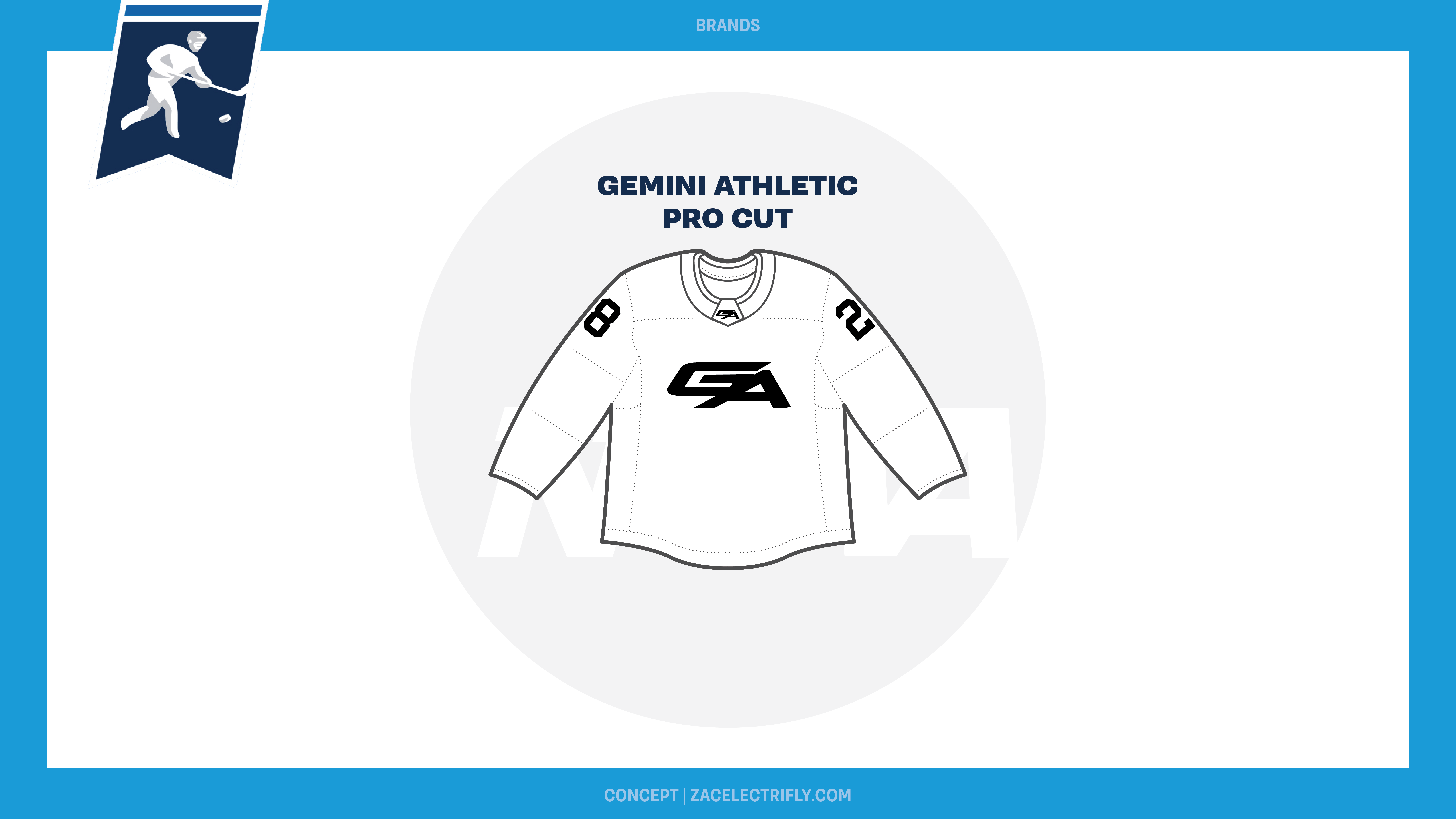 Gemini Athletic has one template. The Gemini Athletic Pro Cut template. It will be used by current NCAA division one hockey teams that use Gemini Athletic jerseys. Gemini Athletic teams will use another company as an equipment provider.