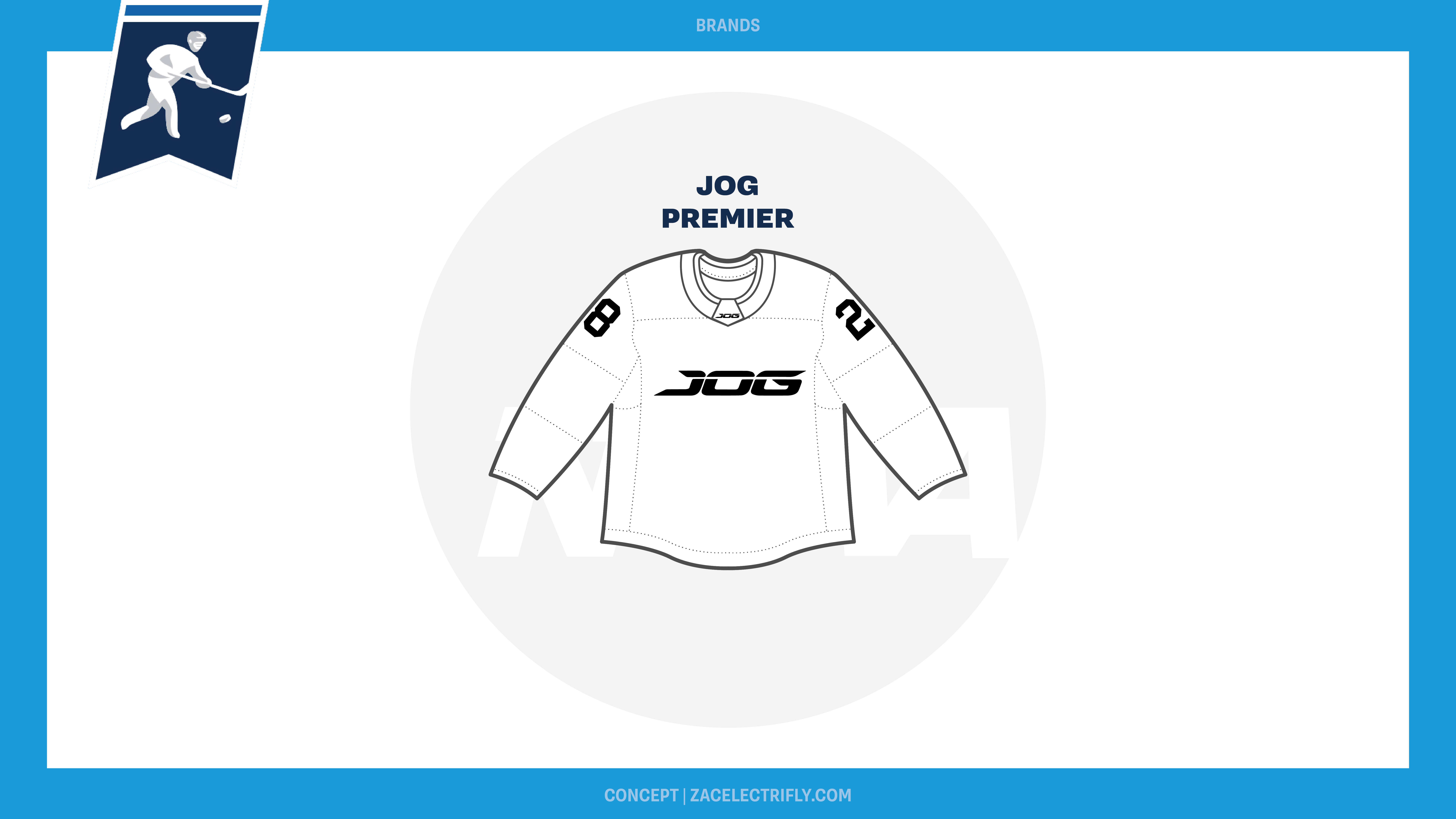 JOG has one template. The JOG Premier template. Not to be confused with the CCM Premier template. That template is based on the current NHL jerseys. It will be used by current NCAA division one hockey teams that use JOG jerseys. JOG teams will use another company as an equipment provider.