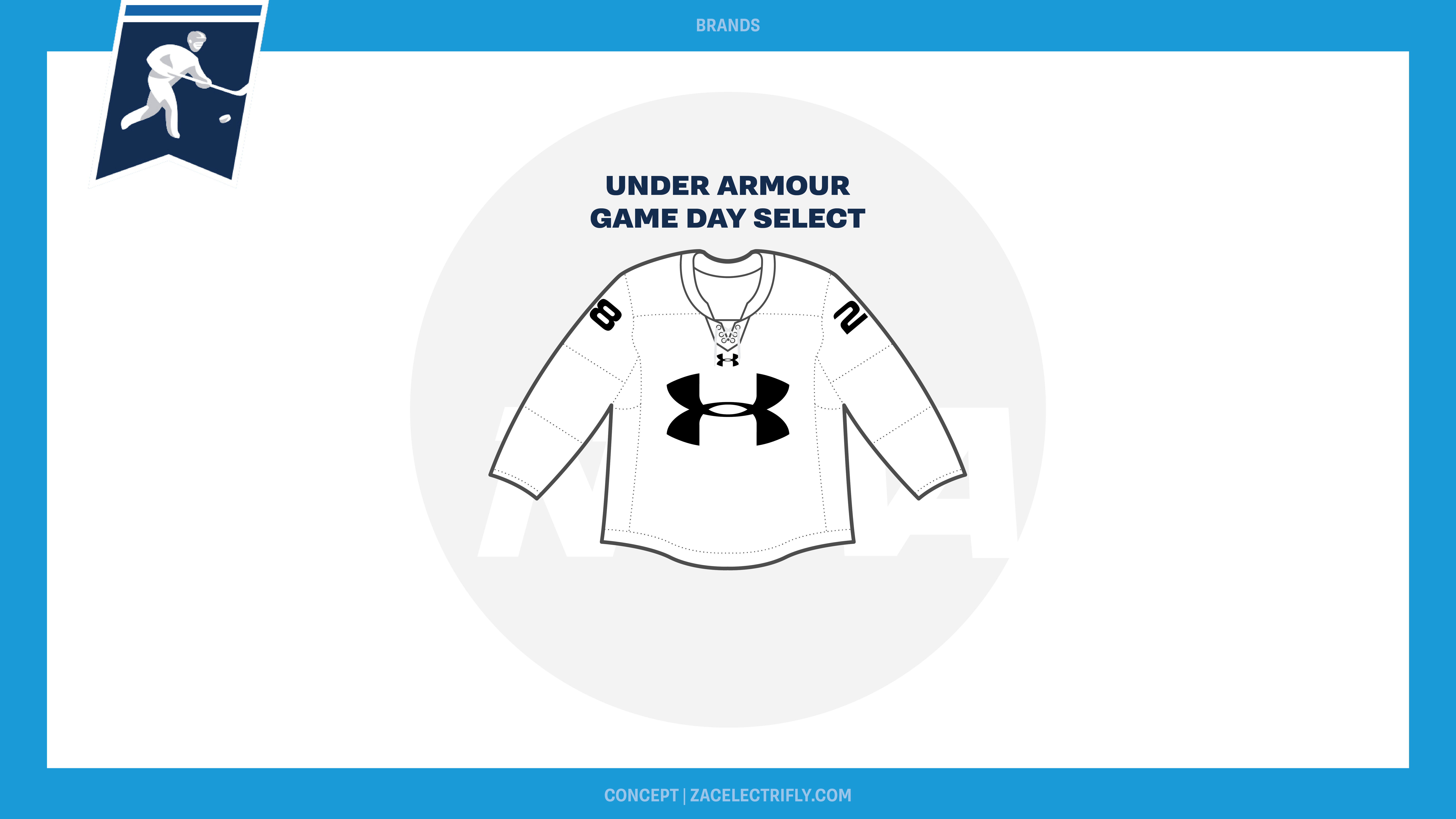 Under Armour has one template. The Under Armour Game Day Select template. It is based on their current NCAA hockey jersey template. Under Armour teams will use another company as an equipment provider.