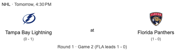 Game two of this series will be on Tuesday, April 24th. Puck Drop is set for 4:30 PM. That game will be in Florida.