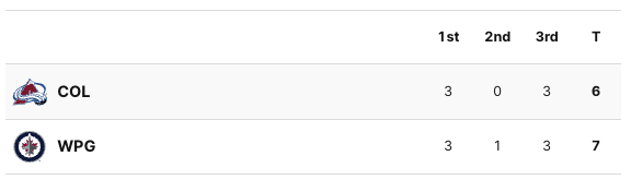 This game was full of offense. Did the defense even show up? Thirteen goals just for the Jets to win by one. The Avalanche are definitely clicking on offense. Forty six shots and two powerplay goals. This series looks like it is going to be one where as soon as one team steps off the gas offensively the other team will win.
