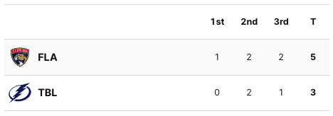 The Florida Panthers took on the Tampa Bay Lightning in game three of their first round series. The Panthers were leading the series 2-0 coming into this game after winning both of the first two games. This was the first game of the series in Tampa Bay. The Panthers scored first halfway through the first period. #19 Matthew Tkachuk scored the goal with #15 Anton Lundell and #23 Carter Verhaeghe getting the assists. The first period ended with the Panthers leading the game 1-0.