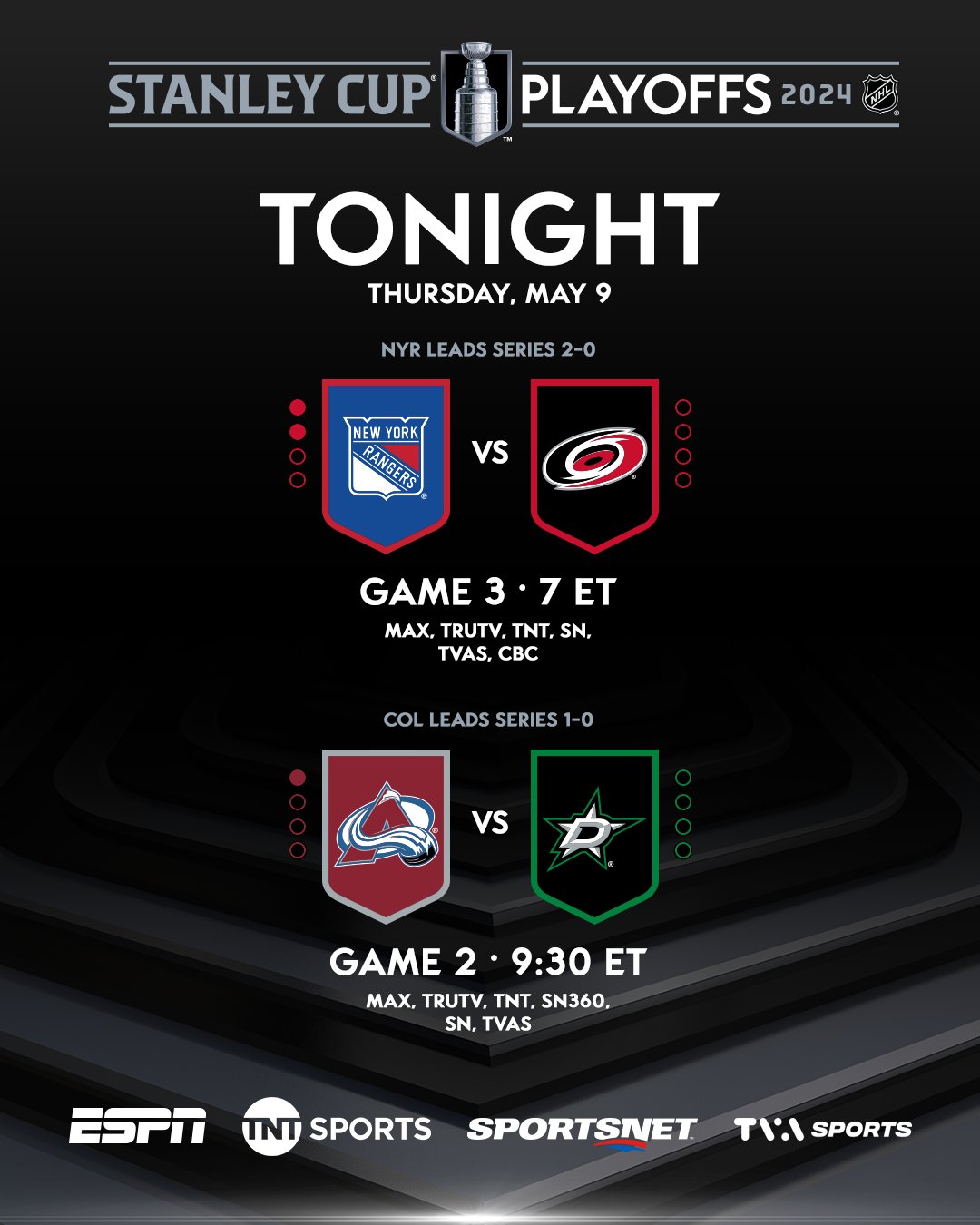 The Stanley Cup Playoffs continued yesterday with two games. The Florida Panthers took on the Boston Bruins in game two of their second round series. Boston was leading that series. The Vancouver Canucks took on the Edmonton Oilers in game one of their second round series. There are two games going on today. The New York Rangers are taking on the Carolina Hurricanes in game three of their second round series. The Rangers lead that series. The Dallas Stars are playing the Colorado Avalanche in game two of that series. The Avalanche lead that series.