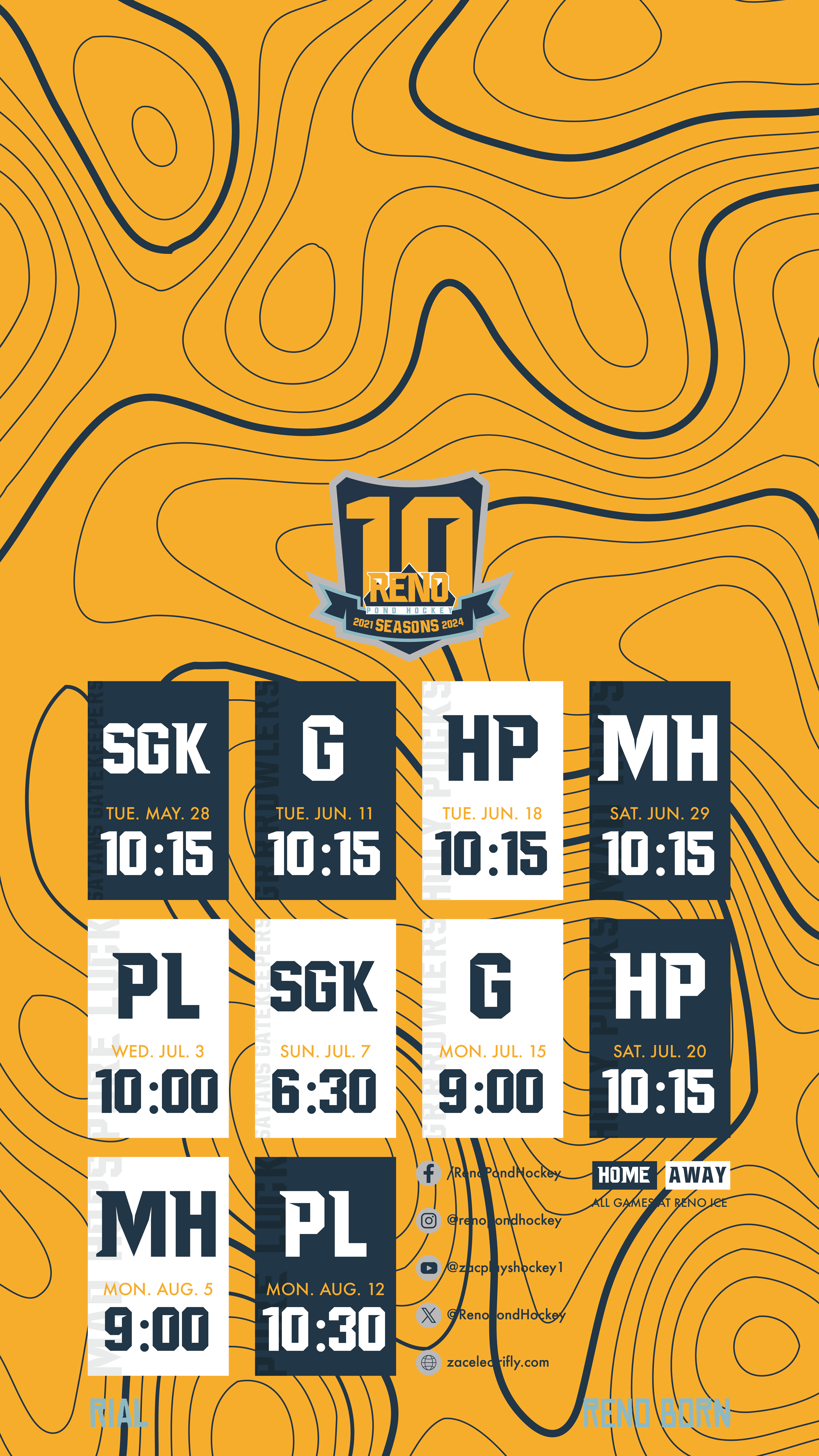 The Reno Pond Hockey schedule for the Reno Ice Adult League Summer 2024 season is out now. You can check out the schedule here. You can check it out on the new league website here. In this post, there is a printable schedule that can be printed or used as a digital wallpaper. There is also a mobile schedule that can be used as a wallpaper for cell phones. There is also a downloadable schedule that can be added to your calendar on your devices.