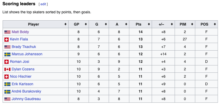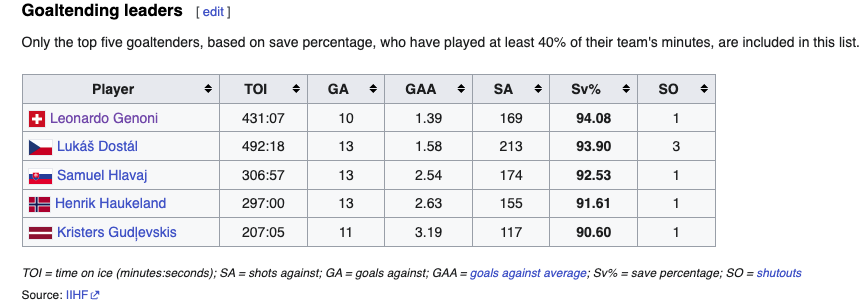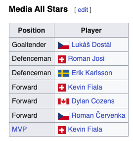 The Czech Republic won the final standings. The United States and Canada underperformed as usual. This is usually due to the Stanley Cup Playoffs, AHL Playoffs, ECHL Playoffs, and CHL Playoffs, taking up majority of the North American players time. I honestly think this tournament would be better in on ice play and growth if it took place every four years instead of every year like the FIFA World Cup. It should have a qualifying structure like the FIFA World Cup as well. It should also be played in late June or July when professional hockey leagues are on their off seasons. Anyway, Great Britain and Poland have been relegated again after just being promoted. The United States Matt Boldy who plays for the Minnesota Wild of the NHL won the scoring title for this event with six goals in eight games. Leonardo Genoni of Switzerland was the top goaltender in this tournament. He plays for Zug EV in the Swiss-A league. He only allowed ten goals in eight games.