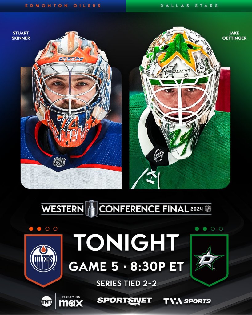 The Dallas Stars take on the Edmonton Oilers for game five of the Western Conference Finals. The Western Conference Finals are tied at 2-2. The Edmonton Oilers tied the series with a win in game four. This game will be in Dallas. Puck drop is scheduled for 5:30 PM. Who will take the series lead? Will the Stars defend their home turf? Will the Oilers continue what they started in game four?