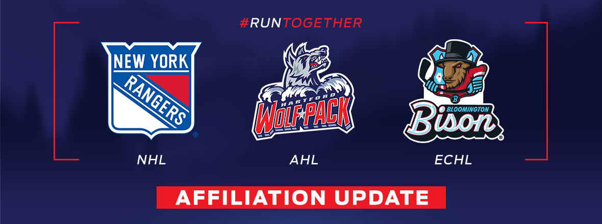 The Bloomington Bison announced their first ever National Hockey League affiliate. They will be affiliated with the New York Rangers. The Bison will be the Rangers secondary affiliate. The Hartford Wolf Pack of the American Hockey League will remain the primary affiliate of the New York Rangers. The New York Rangers have been affiliated with the Hartford Wolf Pack since 1997. The New York Rangers ECHL affiliate was the Cincinnati Cyclones last season. Prior to that the Jacksonville Icemen (2021-23), Maine Mariners (2018-21), Greenville Swamp Rabbits (2015-18), Greenville Road Warriors (2010-15), Charlotte Checkers (1996-2010) and Erie Panthers (1991-94) have all been the Rangers secondary affiliate in the ECHL. This move does leave the Cincinnati Cyclones without an affiliate.