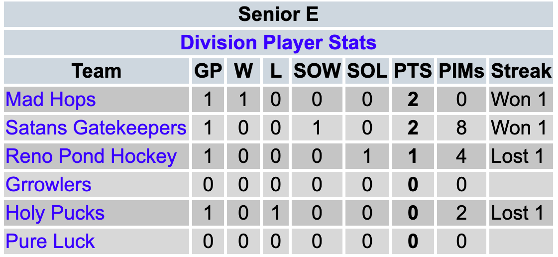 1. […] Pond Hockey is coming off of a 3-4 Shootout loss to Satan’s Gatekeepers. Reno Pond Hockey have a record of 0-0-1 so far this season. They are […]