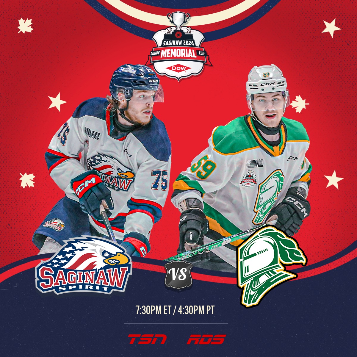 The London Knights of the OHL took on the Saginaw Spirit of the OHL in the CHL Memorial Cup Final. Saginaw took a 2-0 lead after the first period. Both teams scored in the second period. The Score was 3-1 Saginaw going into the third period. London scored twice in the third period but it was not enough. The Saginaw Spirit was the game 4-3. The game winning goal was scored with twenty one seconds on the clock. The Saginaw Spirit are the Memorial Cup Champions. The London Knights have been eliminated. This was their first time winning the Memorial Cup. This is the first time since 2008 that a team from the United States has won the Memorial Cup.