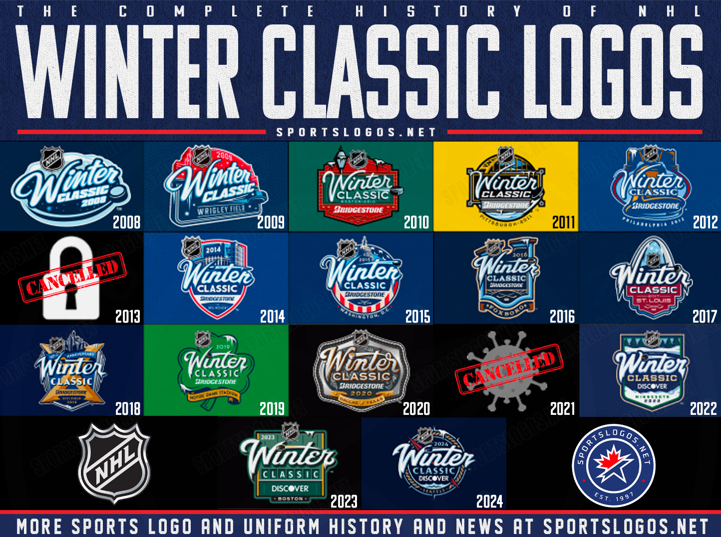 The logo for the NHL Winter Classic was released with not a lot of press. The Big stand out with the logo is that there is no year on it. Most of the Winter Classic logos in the past have had the date or year on it. The design seems to be inspired by the outfield wall at Wrigley Field. The background of the logo has the Wrigley Field sign, some bricks and Ivy. The logo also has the event name and location. It has the NHL logo. I do think It is one of the weaker NHL Winter Classic logos. I do still like it.