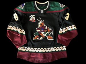 The Arizona Coyotes have moved to Salt Lake City Utah. The Utah NHL team still does not have a name. They still do not have jerseys. I will get into whats going on with the Utah NHL team in a later post. In this post I am taking a look back at the Arizona Coyotes jerseys. I did look at their logos in my last Arizona Coyotes post. I will be looking at all of the jersey they wore over the past twenty five years. I will not be going over any of their warm up jerseys. This is just about the Arizona Coyotes home, away, alternate, heritage, and reverse retro jerseys.