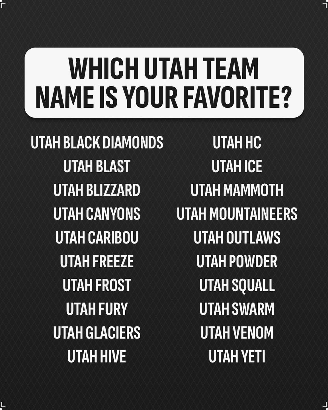 Their is a long list of potential names. There was originally twenty names to choose from. The Utah Hockey Club is allowing teams to vote on what the future team name should be. It would have been cool to see the team buy the Utah Grizzlies branding and have the Utah Grizzlies become an NHL team. They did not do that. the Utah Stormin’ Morons was never an option. That was the funnest name I have heard suggested for the team. I do think voting it going a little fast considering the team will not use the new name until after the 2024-25 season. They have already narrowed the team name down from twenty names to around three names. Voting only started less than three months ago. The team name voting process is going so fast that by the time the 2024-25 season starts, the Utah Hockey Club will lose a lot of momentum surrounding the new name. If they slowed down the voting and kept it going until the end of next season, fans will be on the edge of their seat waiting for the new name until the end of next season. Then by the end of next season the excitement will be larger than if they finished voting and announced a team name before the 2024-25 season starts. If the team name is announced before the start of the 2024-25 season, all hype surrounding the new name will be gone before the season is over. With how fast the name voting is going, they will likely stop calling the team Utah Hockey Club while using the new logos before the 2024-25 season even starts. The Utah Mammoth and Utah Yeti are the current front runners. I am not a fan of either of those names. There are a couple of names on the list that are not too bad. The list of names feels rushed. The Arizona Coyotes, Vegas Golden Knights, and Seattle Kraken have great names and branding. It will be interesting to see how the NHL follows that up in Utah.