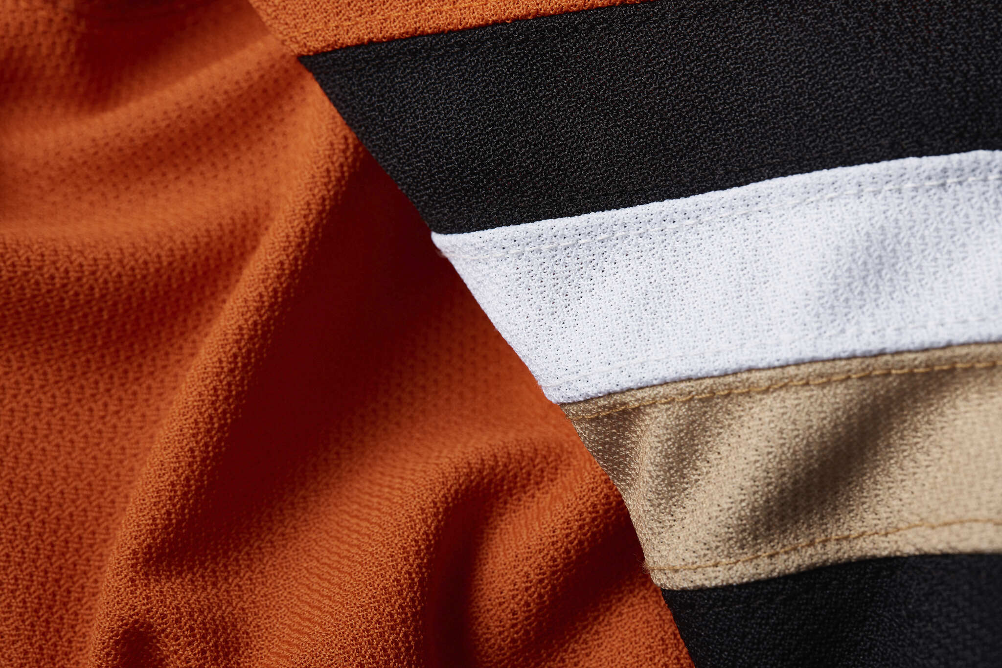 The Anaheim Ducks will now have an orange home jersey and a white away jersey. From 2006 up to last season the Duck had a black home jersey and white away jersey. Their previous jerseys were introduced in 2010 as an alternate jersey. Their new jerseys seem to be inspired by the Mighty Ducks of Anaheim jerseys worn from 1993 to 2006. The stripping on the sleeves is kind of revered of what the original jerseys had. Instead of going diagonal on the bottom of the jersey, the tripes are straight. The white jersey has orange shoulders. On the font is the new primary logo. On the shoulders is the new duck foot logo. The jerseys are solid. I do like them. I like the orange becoming the home color. Black didn’t really work for the Ducks. Their main rival the LA Kings have had black home jerseys since five years before the Ducks existed. As a San Francisco Giants fan I love the colors. The only problem with these jerseys currently is that gold thread is used on the numbers and logos but not on the stripping. Their are two different shades of gold on the jersey. It is not an aesthetic choice. Gold material is available. The Vegas Golden Knights have gold jerseys. A lot of ducks fans were hoping that the Anaheim Ducks 2022 Reverse Retro jersey would become the full time jersey. That clearly didn’t happen but what we got continues to push the brand forward in an arguably better way.