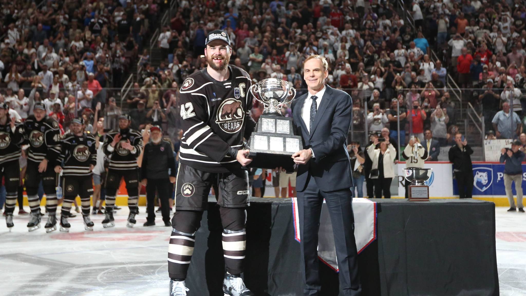 The Hershey Bears (Washington Capitals affiliate) took on the Coachella Valley Firebirds (Seattle Kraken affiliate) in the 2024 AHL Calder Cup Finals. This was the first time since 1991 that the Calder Cup Finals featured the same teams as the previous year. The Firebirds won game one 4-3 in Hershey. The Bears won game two 5-2 in Hershey. The Firebirds won game three 6-2 in Coachella Valley. The Bears won game four 3-2 in Coachella Valley. The Bears won game five 3-2 in Coachella Valley. The Bears won game six 4-5 in overtime. Like the 2024 Kelly Cup Finals the winner was decided in overtime. The Hershey Bears won the 2024 AHL Calder Cup Finals 4-2. They have won back to back AHL Championships. It was their thirteenth Calder Cup win. They are the first team since the 2010 season to win back to back Calder Cups. The last team to win back to back Calder Cups was also the Hershey Bears. The Rochester Americans are the only other active AHL team to have won back to back Calder Cups doing so in 1955 and 1956. The Springfield Indians won back to back in 1960, 1961, and 1962. The Maine Mariners (1978 & 1979), Nova Scotia Voyageurs (1976 & 1977), the Cleveland Barons (1953 & 1954), and the Buffalo Bisons (1943 & 1944), are the other AHL teams to win back to back Calder Cups.
