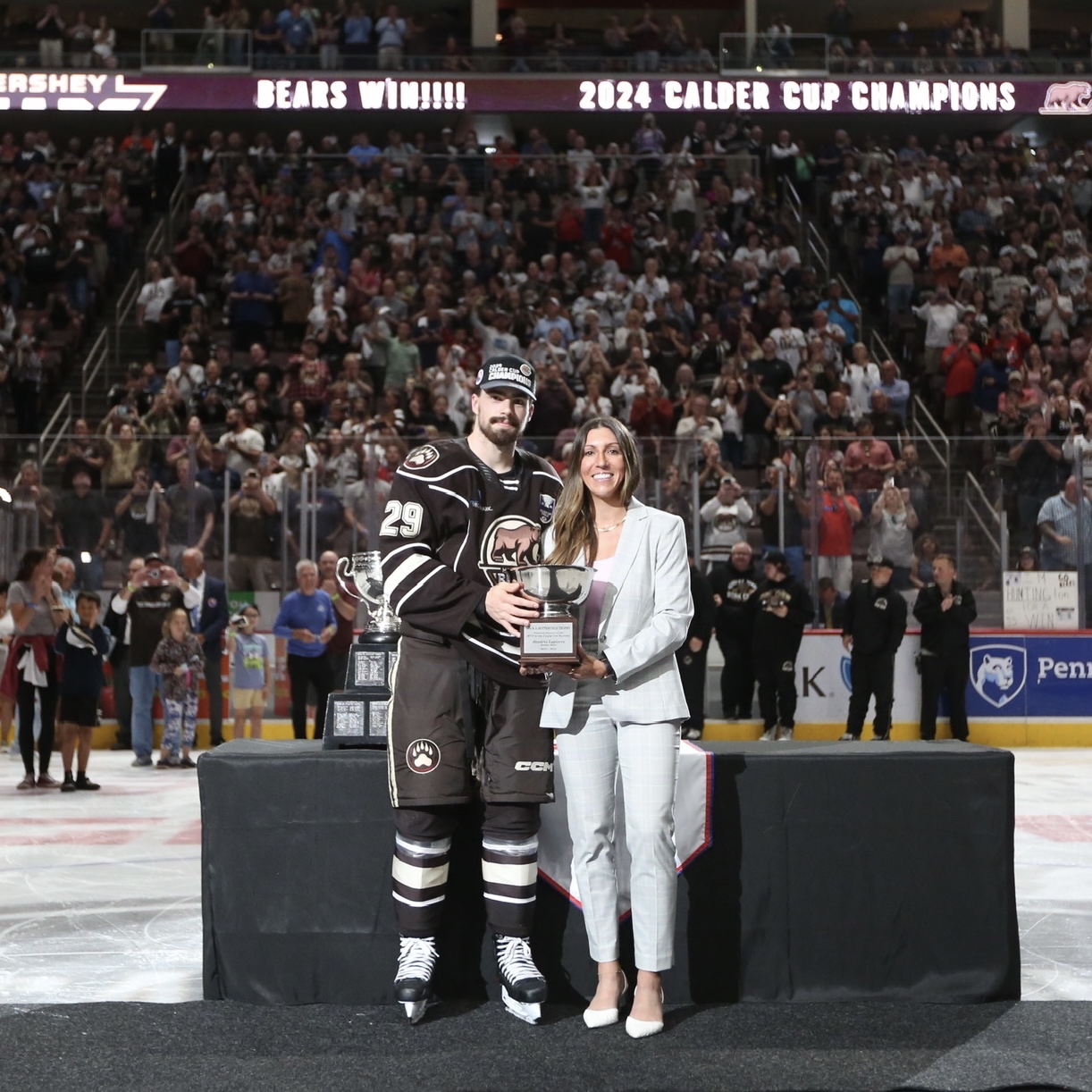 The Hershey Bears took on the Cleveland Monsters in the AHL Eastern Conference Finals. The Hershey Bears won the series 4-3. The Hershey Bears are the 2024 AHL Eastern Conference Champions. The Hershey Bears won the Richard F. Canning Trophy for a league leading seventh time and second time in a row.
