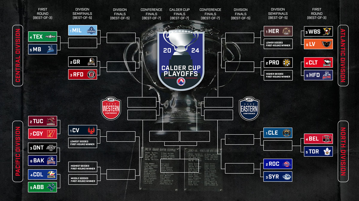 Twenty three teams qualified for the 2024 AHL Calder Cup Playoffs. The AHL introduced a new playoff logo for this season. The first round were best of three games series. The Division Semifinals and Division Finals were best of five games series. The Conference Finals and Calder Cup Finals were best of seven games series. Seeding and matchups were based on divisional standings.