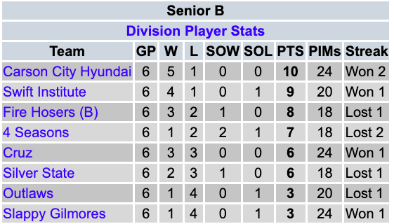 Carson City Hyundai still lead the B-League power rankings. They won their week seven game in a blowout. The Swift Institute are second in the power rankings. They moved up after a shutout win in week seven. The Reno Fire Hosers B are in the third spot. They moved down after a loss. Cruz Construction are in the fourth spot. They moved up after a win. Silver State moved down after a shutout loss. The Slappy Gilmores moved up after their first win of the season. The Outlaws moved down after a loss. 4 Seasons are last in the power rankings after a loss.