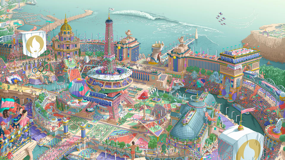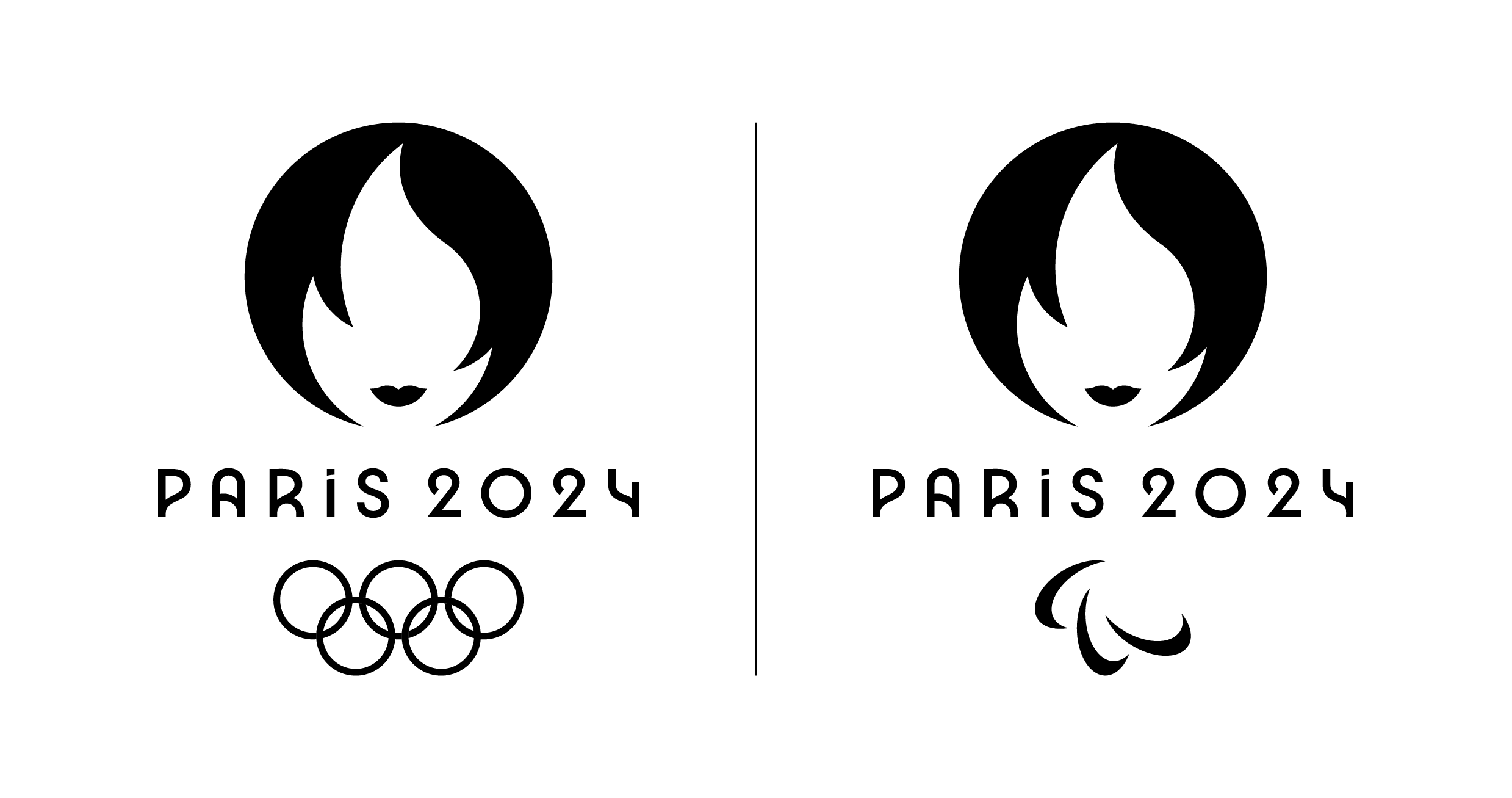 The logo for Paris 2024 combines the gold medal, the flame, and Marianne who is the personification of the French Republic. It is a stylish minimal design. Below the design is the event name. Below that is the Olympic or Paralympic logo.