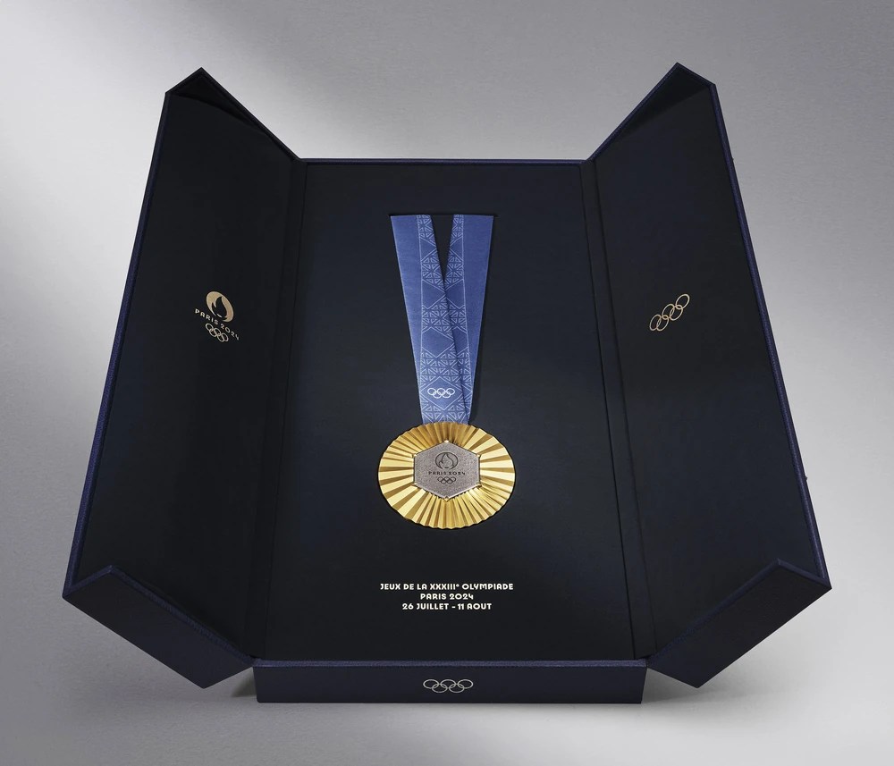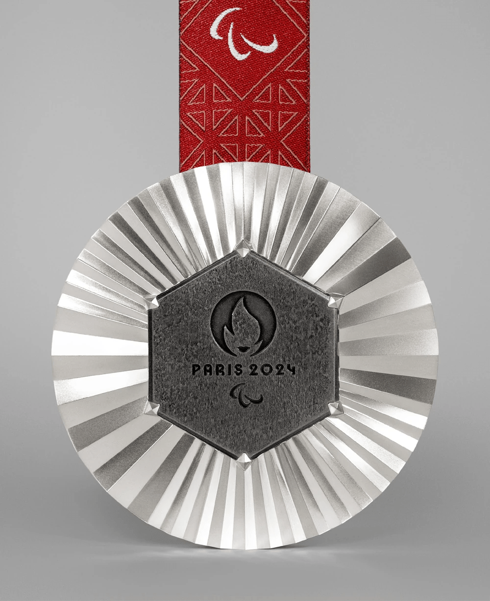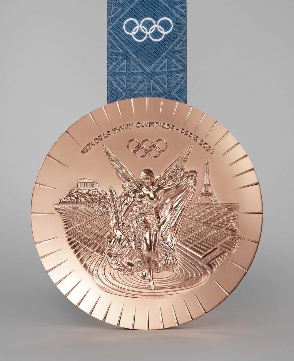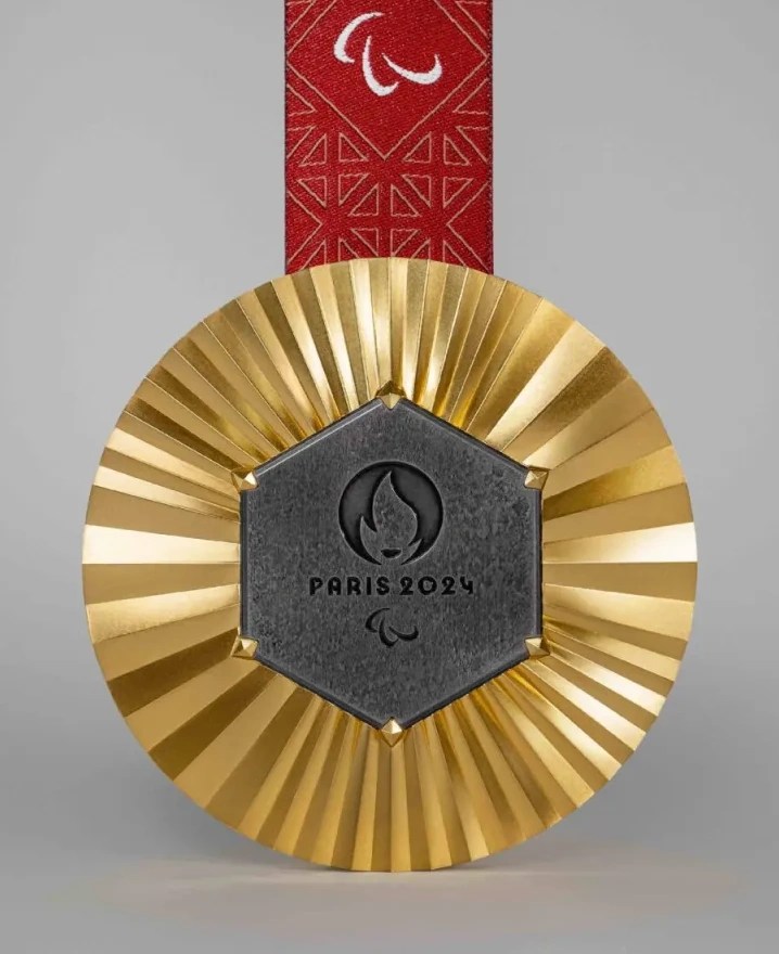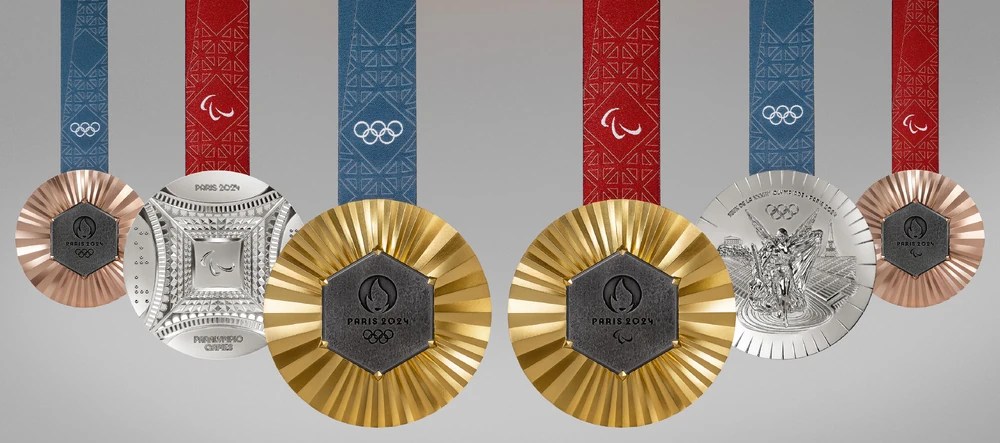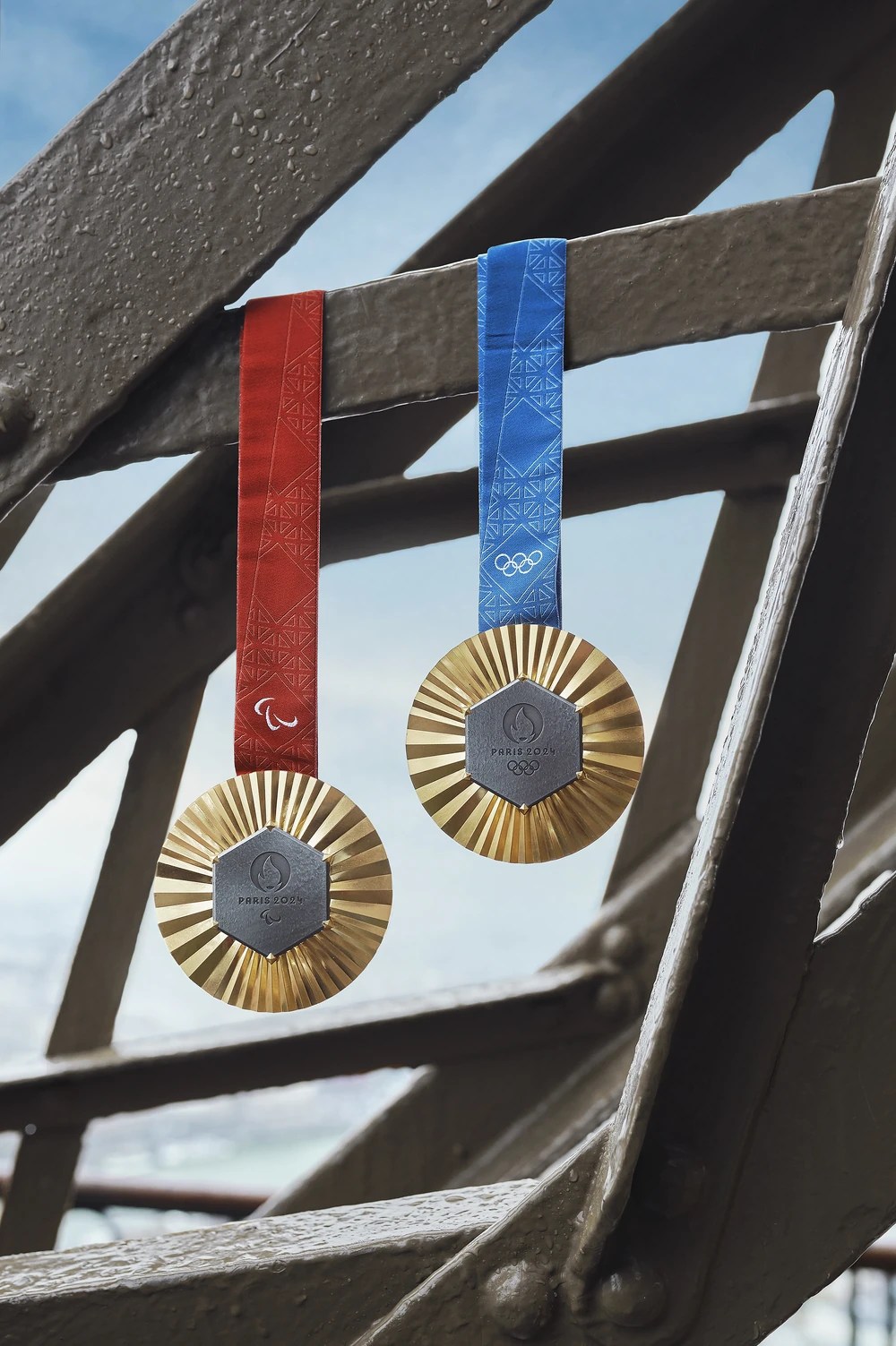The medals for Paris 2024 are quite unique. There are two different designs. One for the Olympics and one for the Paralympics. All of the medals have a piece of the Eiffel Tower in them. On the front is a hexagon piece of the Eiffel Tower joined into the medals. On the front is the Olympic or Paralympic logo. The front also has a starburst pattern. The back of the Olympic medals has a design of the goddess of victory. On the back of the Paralympic medal is a design of the Eiffel Tower. The medals will be handed out in a custom Louis Vuitton box. Louis Vuitton also made a custom “trunk” for the medals.