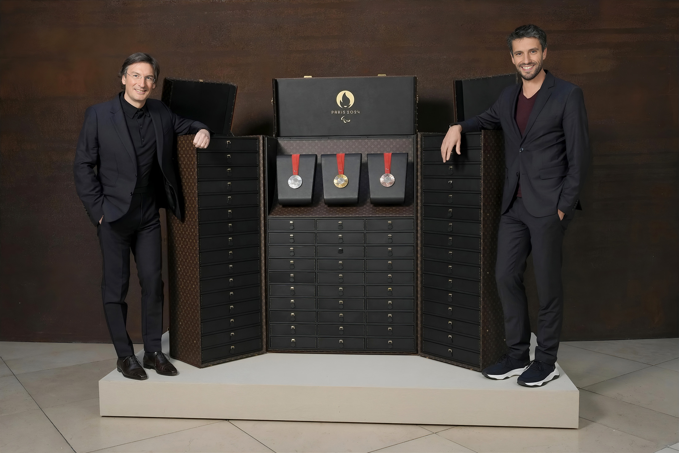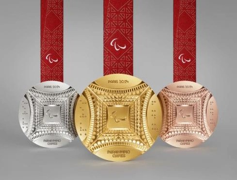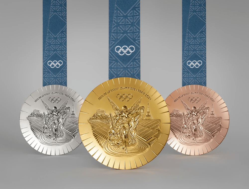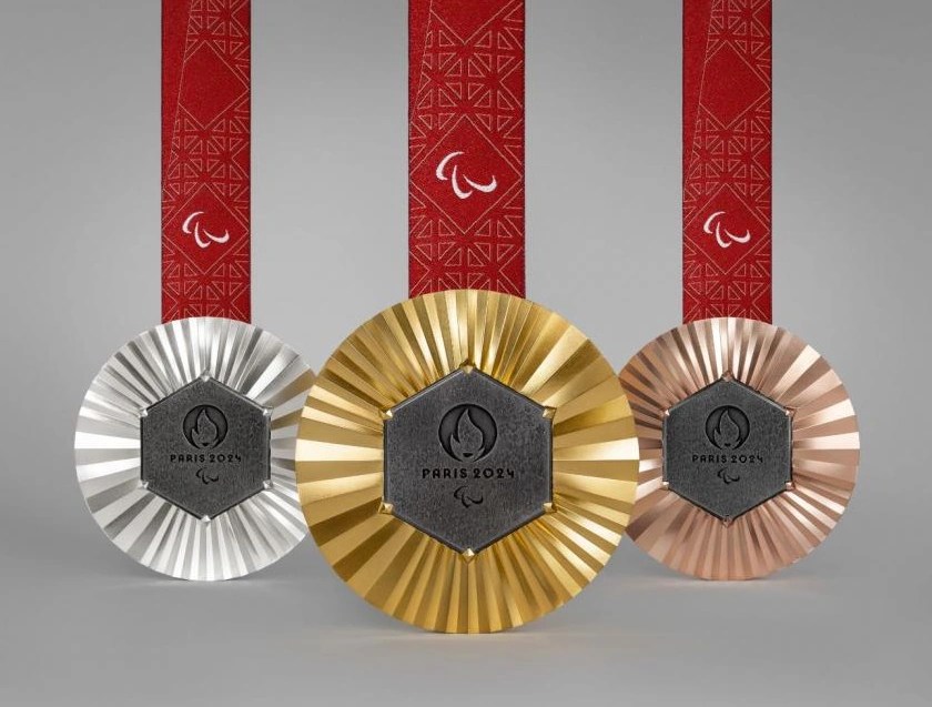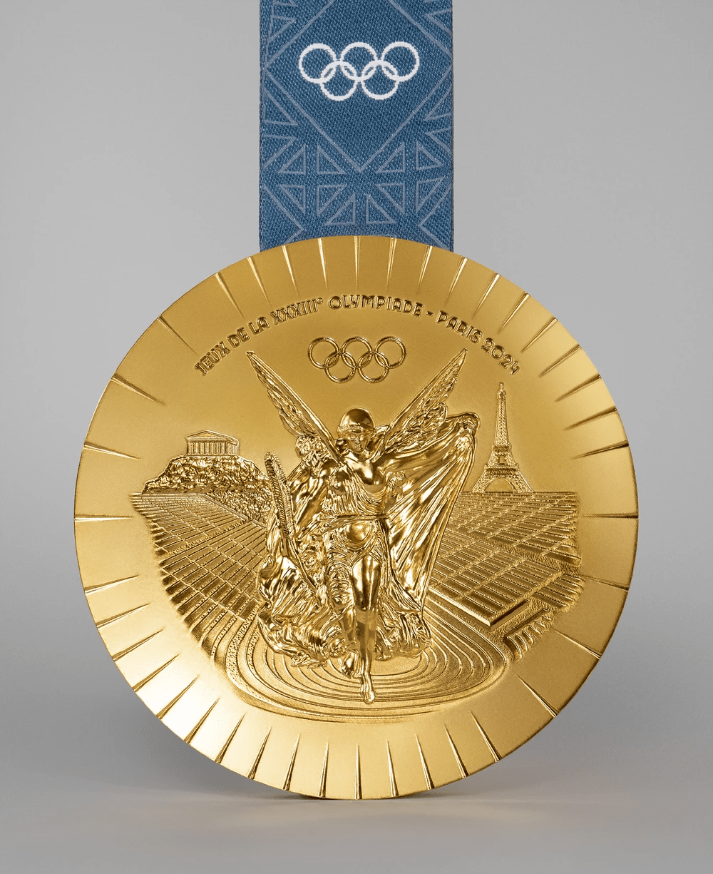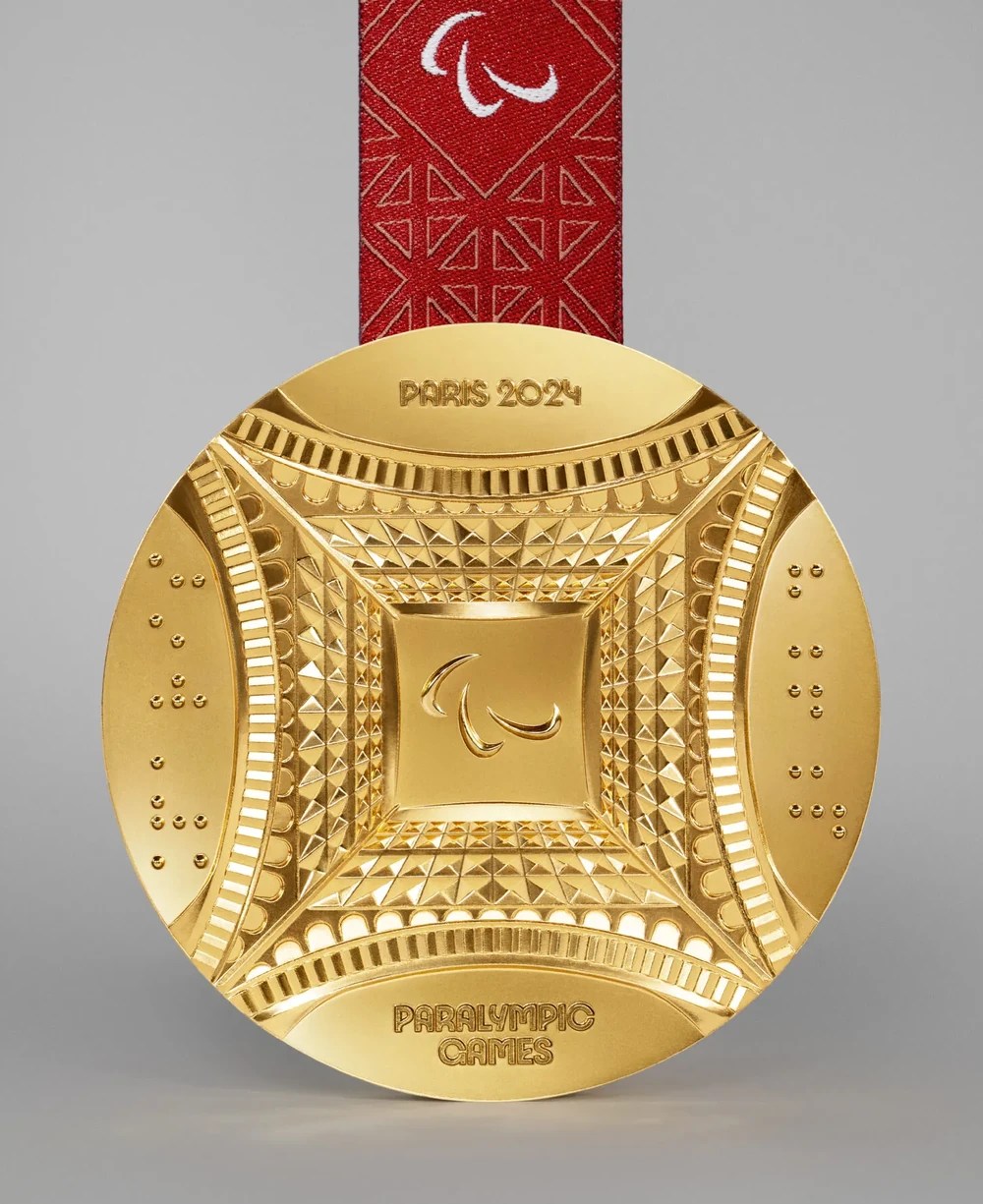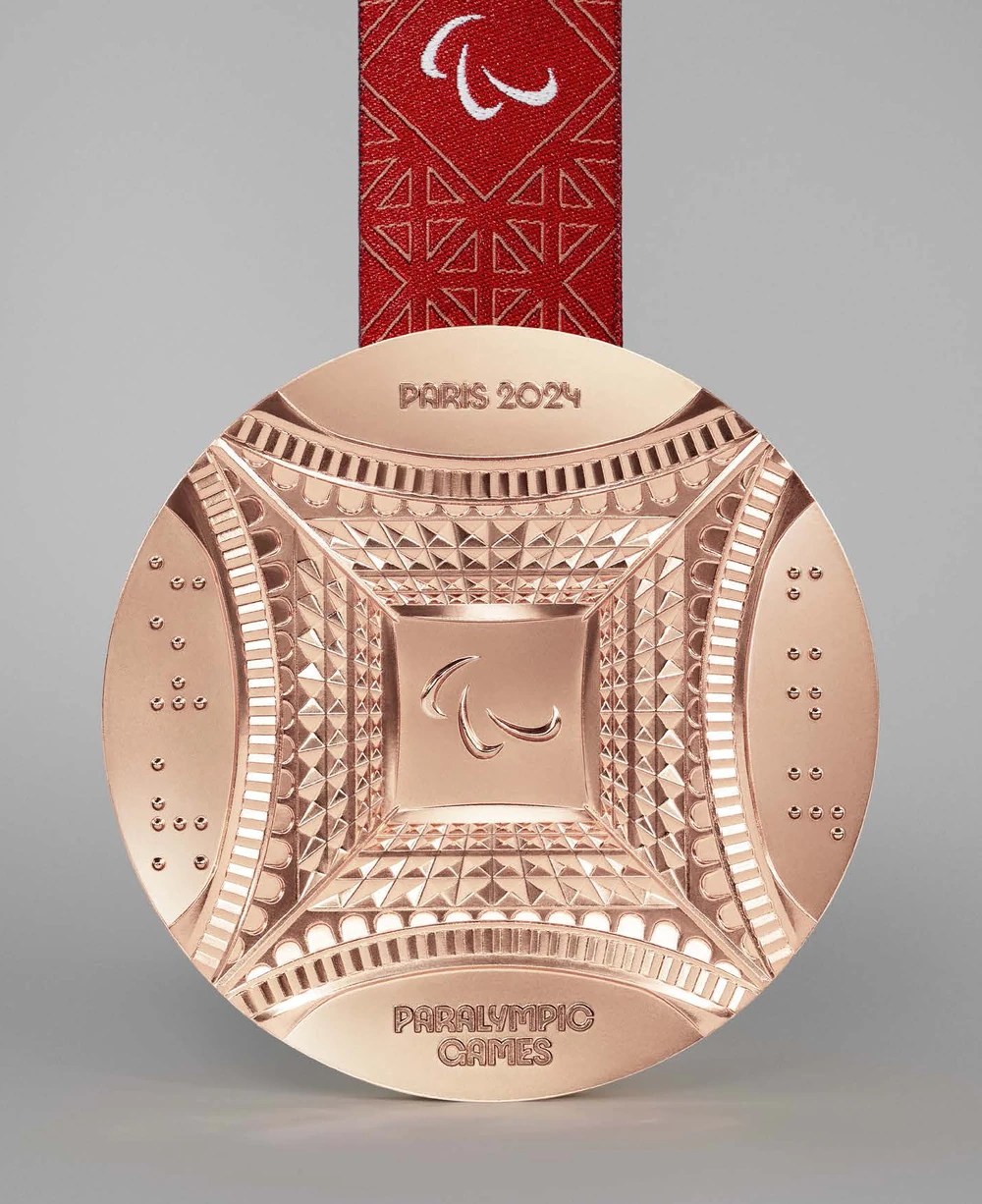 The medals for Paris 2024 are quite unique. There are two different designs. One for the Olympics and one for the Paralympics. All of the medals have a piece of the Eiffel Tower in them. On the front is a hexagon piece of the Eiffel Tower joined into the medals. On the front is the Olympic or Paralympic logo. The front also has a starburst pattern. The back of the Olympic medals has a design of the goddess of victory. On the back of the Paralympic medal is a design of the Eiffel Tower. The medals will be handed out in a custom Louis Vuitton box. Louis Vuitton also made a custom “trunk” for the medals.