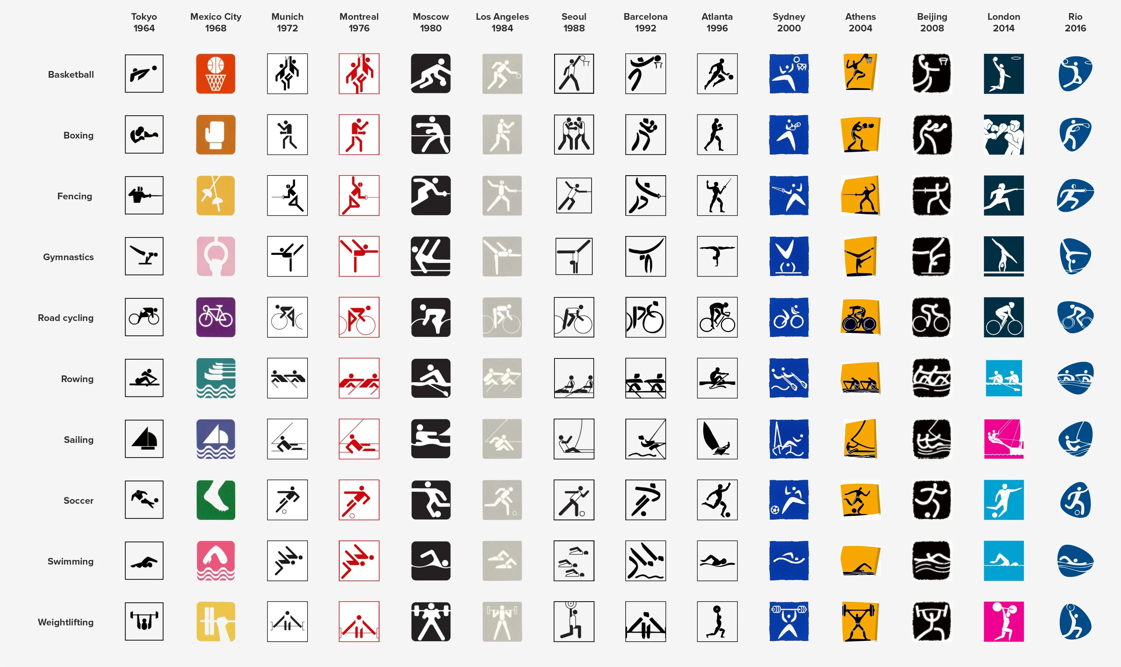 My favorite are still the London 2012 pictograms. For the summer games at least. I really like the hard lines and edges of those ones. I like how Sydney 2000, Athens 2004, Beijing 2006, and Rio 2016 played around with the bounding of the pictograms. I like how Tokyo 2020 played around with the negative space.
