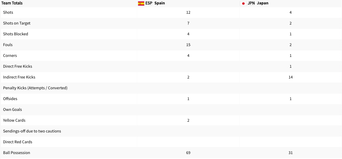 France leads Group A. Iraq lead Group B. Spain lead Group C. Japan lead Group D. It has only been one game. Teams still have two more. While winning the first game is important, teams can still advance after losing the first game.