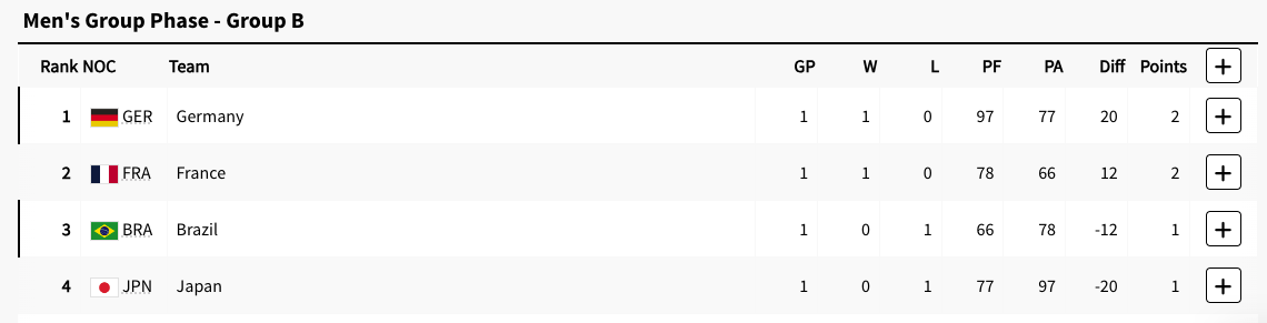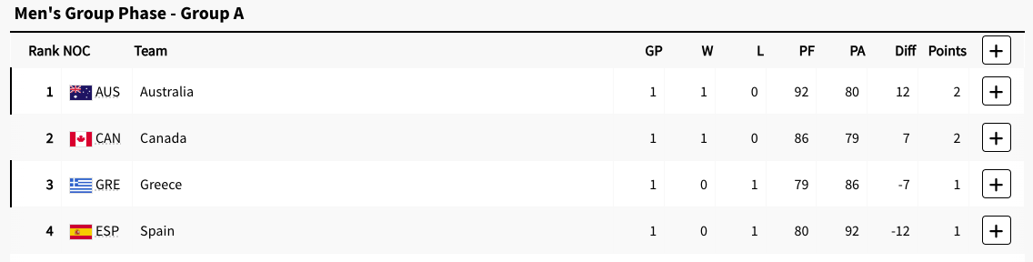 In the men’s standings, Australia lead Group A. Germany lead Group B. The United States lead Group C. Canada, France, and South Sudan are in positions to advance to the knockout stage. Greece and Puerto Rico are in the top two third place spots right now. The top two third place spots will also advance.