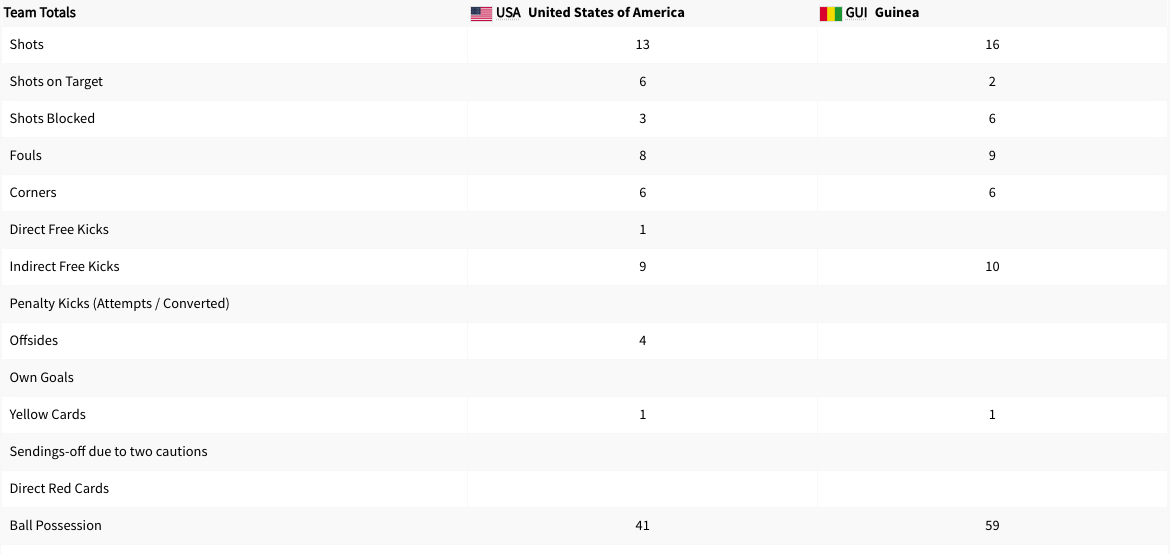 The United States played Guinea. Check out my full game review if you have not yet. This was a Group A match. It was played at the same time New Zealand was playing France. The United States were leading 2-0 at halftime. The final score was 3-0 United States. The United States will play Morocco next. Guinea did not advance to the knockout stage.
