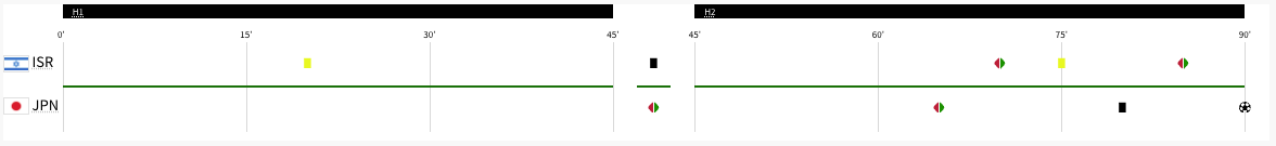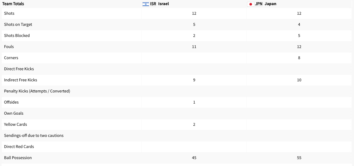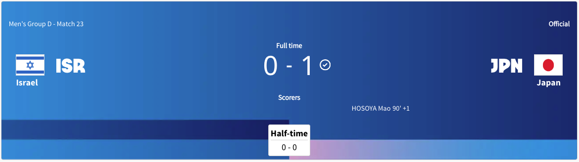 Israel played Japan. It was a Group D match. It was happening at the same time as Paraguay was playing Mali. Israel got a yellow card in the 16′ minute. The score was tied at 0-0 after the first half. Israel got another yellow card in the 71′ minute. Japan scored in extra time. The final score was 1-0 Japan. Israel did not advance to the knockout stage. Japan will play Spain next.