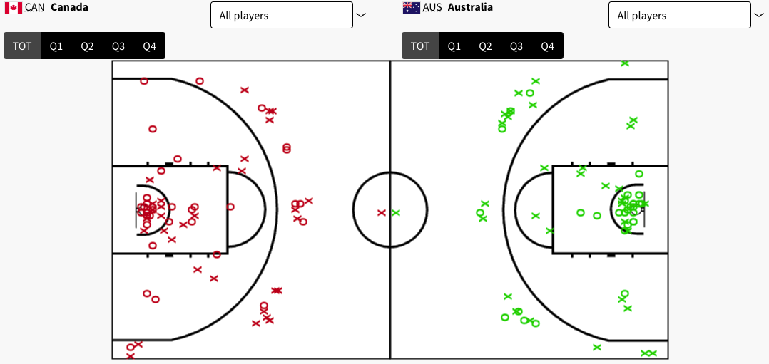 Canada played Australia. It was a Group A match. Australia was leading 49-45 at halftime. the final score was 93-83 Canada. Canada had a huge second half. They outscored Australia by fourteen in the second half. Canada will play Spain next. Australia will play Greece next.