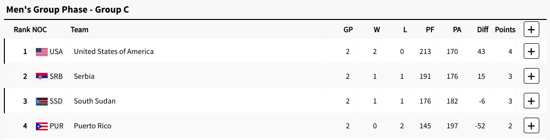 The United States lead Group C. Serbia are second in the group. South Sudan are third in the group. Puerto Rico are last in the group. The United States, Serbia, and South Sudan are in positions to advance. It is still just a three way battle for the second or third spot as the United States are unstoppable. They are the only team to cross over 200 points in the tournament. The last time the United States won the group was at Rio 2016.