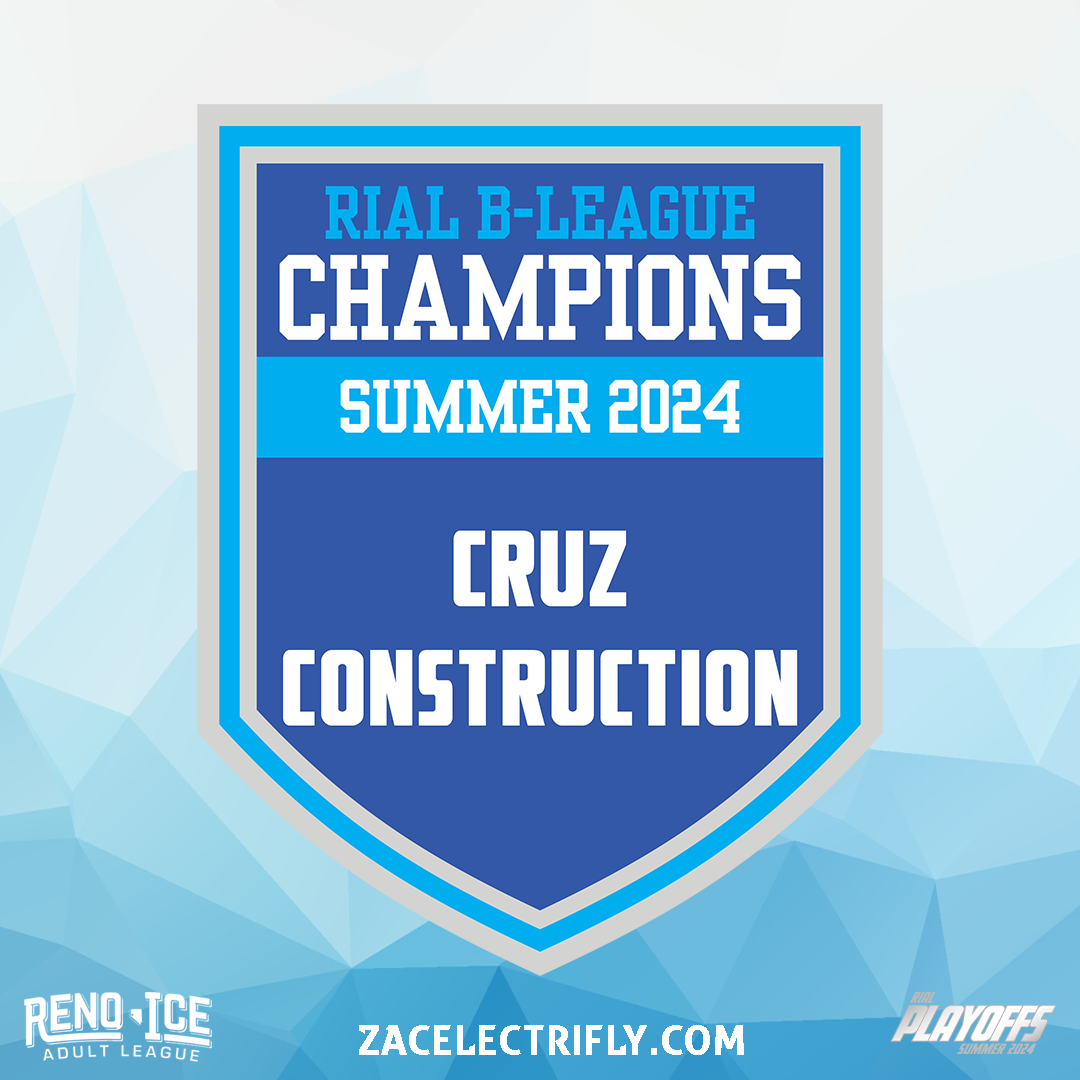 The Reno Ice Adult League Summer 2024 season came to an end last week. The RIAL Fall 2024 season starts this week. The RIAL A-League were on hiatus for the RIAL Summer 2024 season. The RIAL B-League, RIAL C-League, RIAL D-League, and RIAL E-League played during the RIAL Summer 2024 season. Cruz Construction won the RIAL B-League Championship. Black Ox won the RIAL C-League Championship. Bangarang won the RIAL D-League Championship. Mad Hops won the RIAL E-League Championship. All of the info on the RIAL Summer 2024 Playoffs can be seen here.