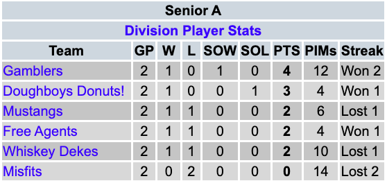 The Reno Gamblers now lead the A-League power rankings. They remain undefeated after starting the season with back to back wins. Doughboys Donuts! are second in the power rankings. They moved up after winning their week two game to remain undefeated during regulation time. The Free Agents are in the third spot. They moved up after a win. Whiskey Dekes are in the fourth spot. They moved down after their first loss of the season. The Mustangs moved down after a loss. The Misfits moved down after starting the season with back to back losses.