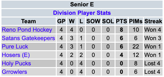 | #1 | Reno Pond Hockey | 0 | #1 |