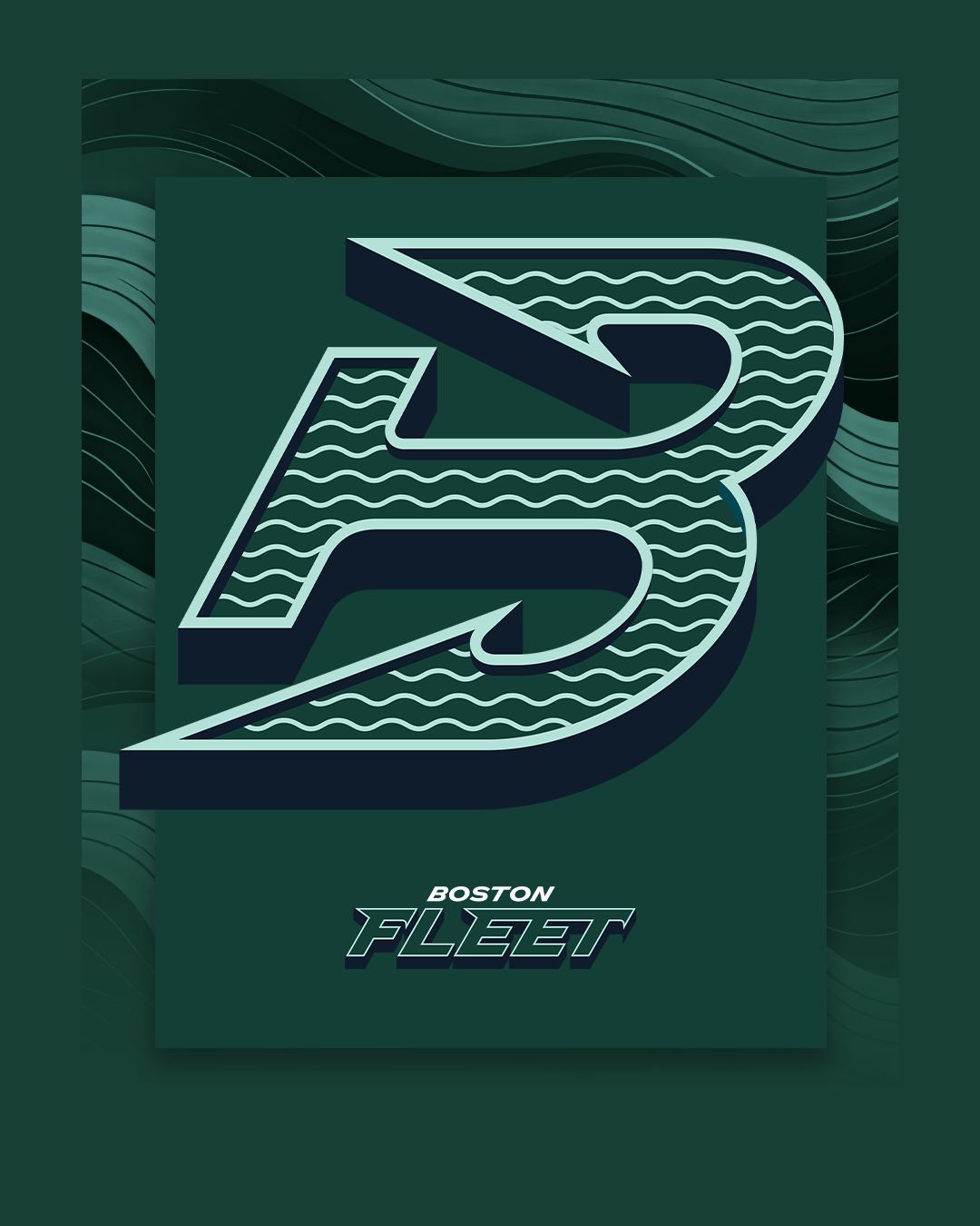 The Boston Fleet logo is an anchor in the shape of a B. The anchor represents Bostons maritime history. The waves represent resilience. The shape of the logo represents the team “sailing towards victory”. the The logo has gained some criticism for being close to the Hartford Whalers logo and the Binghamton Whalers logo. Their colors are forest green, aqua, navy, and teal. They did have grey in their colors last season. It does not look like they will keep grey moving forward. For the Boston Fleet it is hard to overlook the New England sports history that they are referencing. their colors are very similar to the Hartford Whalers. The forest green and navy colors are darker shades of the Hartford Whalers green and blue. The colors could also been seen as a reference to the Boston Celtics of the NBA who have a green and white color scheme. Having the logo as a B is identical to the Boston Bruins who have a B for their primary logo. There are lots of references in this logo that the team have not directly addressed.