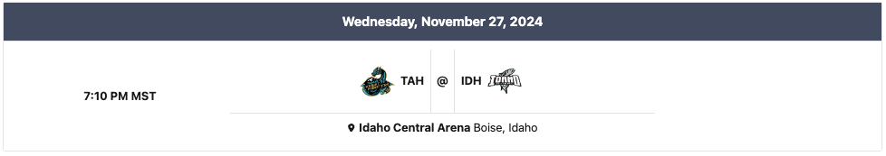 The Tahoe Knight Monsters will take on the Idaho Steelheads for game fourteen on Wednesday, November 27th. It will be an away game. Puck drop is scheduled for 6:10 PM. This is another divisional game.