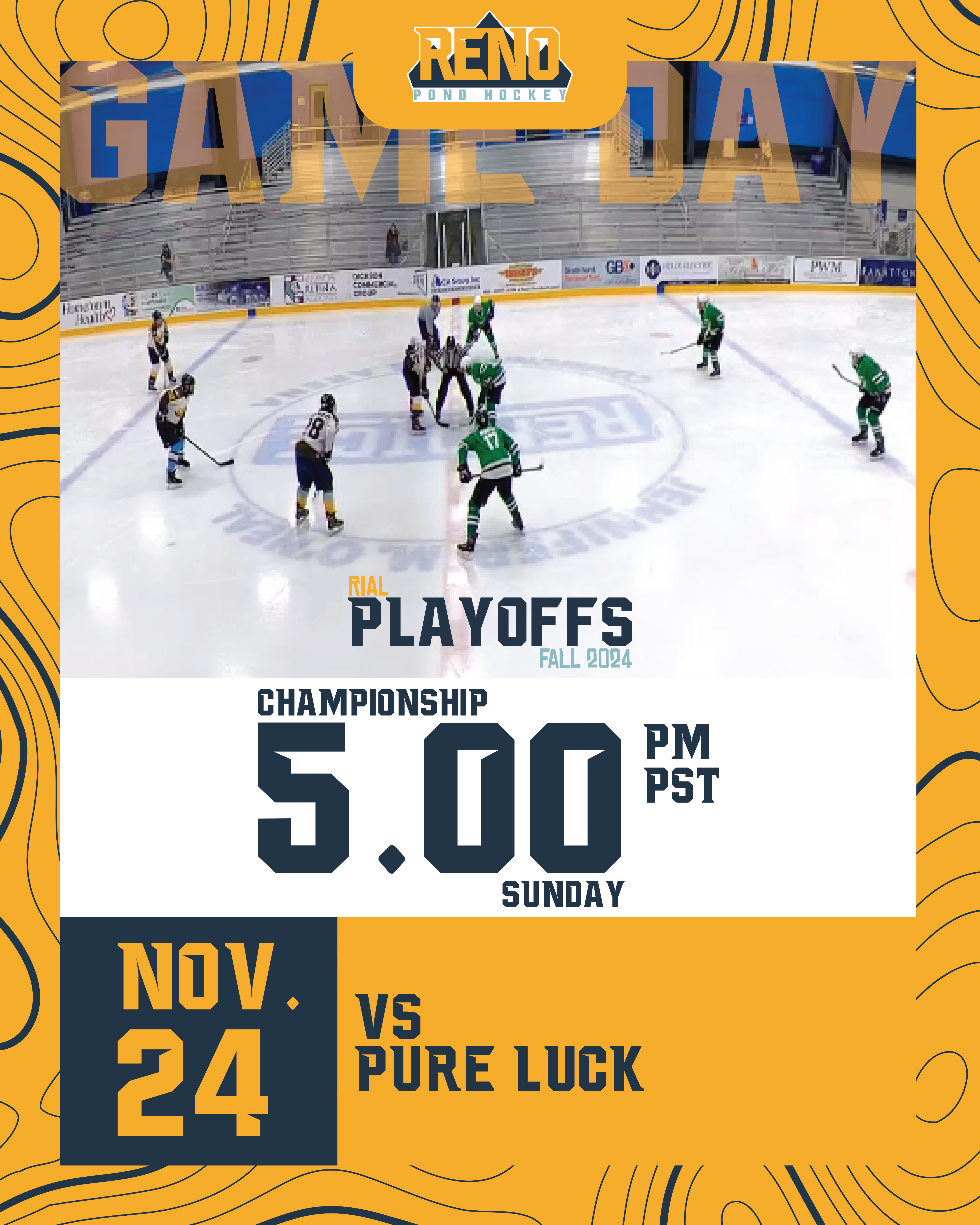 Reno Pond Hockey is coming off a 3-0 victory over the Reno Fire Hosers in the RIAL E-League Fall 2024 Semifinals. Reno Pond Hockey finished the regular season in first place with a record of 10-0-0. Pure Luck are coming off of a 7-1 win over Satan’s Gatekeepers. Pure Luck finished the regular season in third place with a record of 5-5-0. Reno Pond Hockey won both of their regular season match ups. Reno Pond Hockey won all five of their last five regular season games. They finished the regular season undefeated. Reno Pond Hockey lost in the RIAL E-League Championship game last season. Pure Luck won two of their last five regular season games. They finished the regular season with a loss to Reno Pond Hockey. Pure Luck were eliminated in the RIAL E-League Semifinals last season.