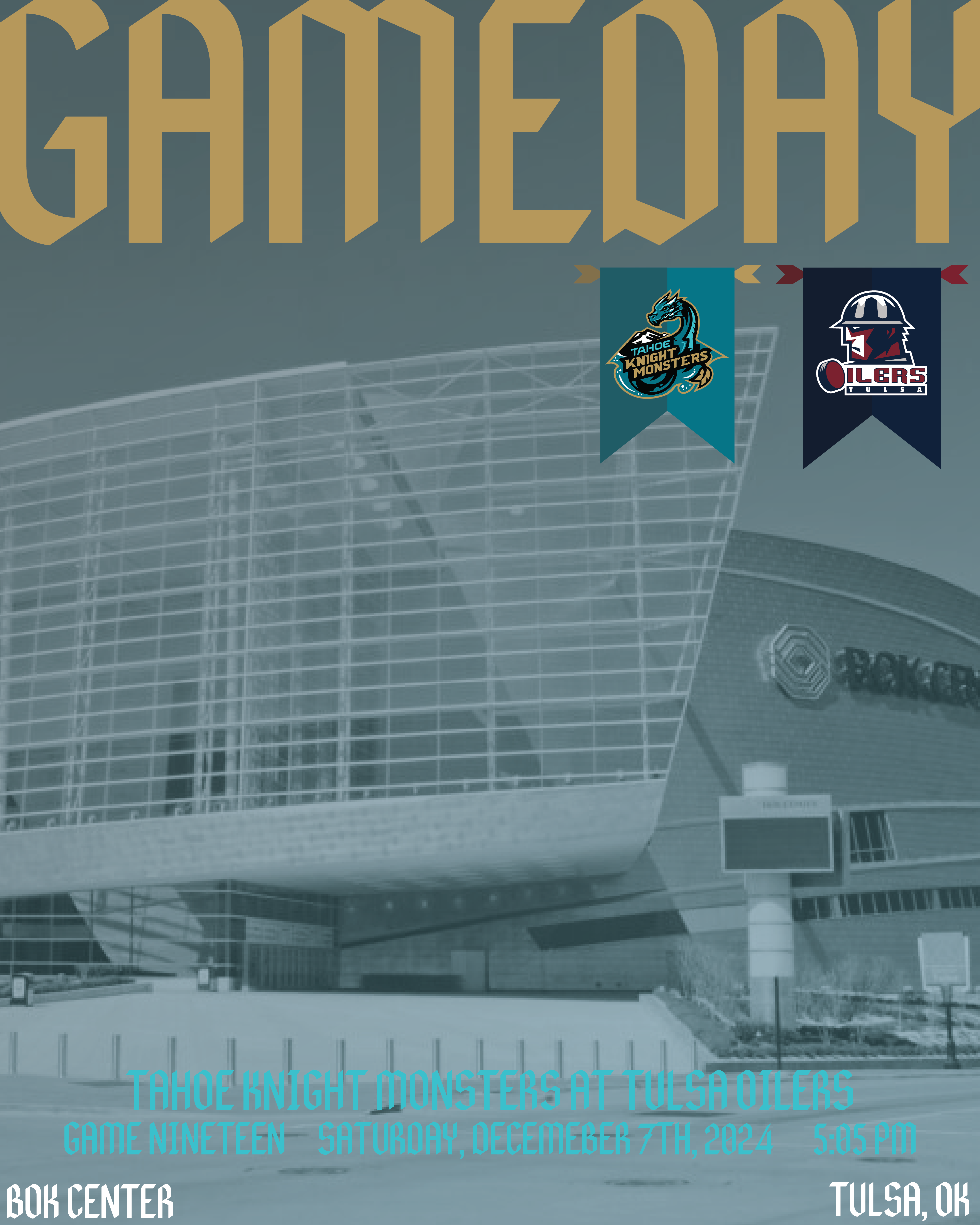 This is the sixth game of this seven game road trip for the Tahoe Knight Monsters. This is the Knight Monsters first of back to back games in Tulsa. The Knight Monsters are looking for their third straight win. That would give them a winning streak. The Tulsa Oilers are looking for their second win in a row. The Tahoe Knight Monsters are looking to get into a playoff position. The Tulsa Oilers looking to move closer to the top of the division. The last game between these two teams was close. Will the Tahoe Knight Monsters get a winning streak? Will the second period continue to be an issue for the Knight Monsters? Will the Tulsa Oilers win their second game in a row?