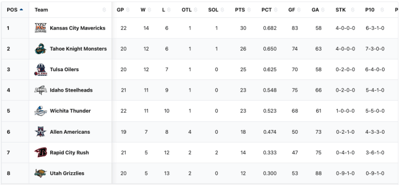 The Tahoe Knight Monsters now have a record of 12-6-2 with 26 points in 20 games. The Knight Monsters are in 9th place in ECHL. They are in 4th place in the ECHL Western Conference. They are in 2nd place in the ECHL Western Conference Mountain Division. They are in a playoff spot. They are only three points into a playoff spot. They are four points away from the top spot in the division. They have the 2nd highest points percentage in the division. This four game winning is the longest winning streak ever in Knight Monsters history. Right now the Knight Monsters are tied with the Toledo Walleye and the Kansas City Mavericks for the fifth longest winning streak in the ECHL right now. The Tahoe Knight Monsters and Kansas City Mavericks are tied for the longest current winning streaks right now in the division.