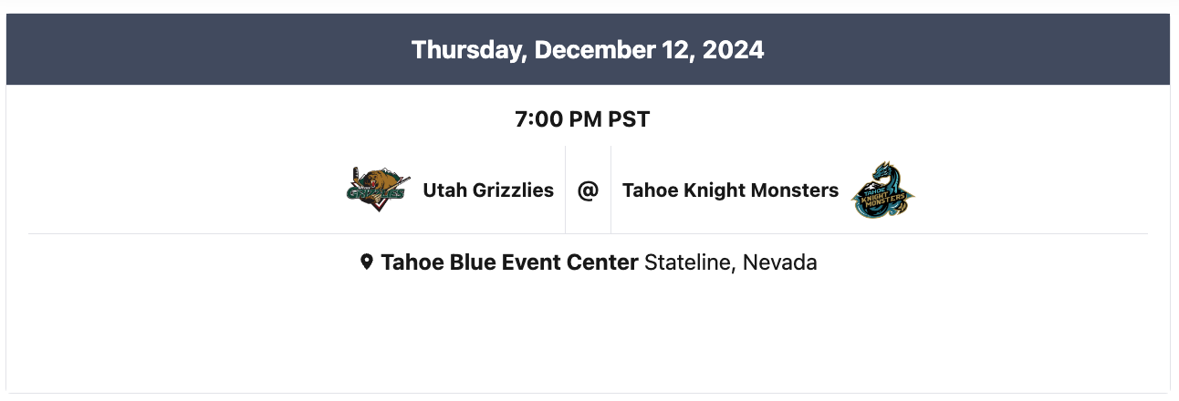 The Tahoe Knight Monsters take on the Utah Grizzlies for game twenty one on Thursday, December 12th. It will be a home game. The Tahoe Knight Monsters and Utah Grizzlies will be playing six straight games against each other. Puck drop is scheduled for 7:00 PM. This is another divisional game.