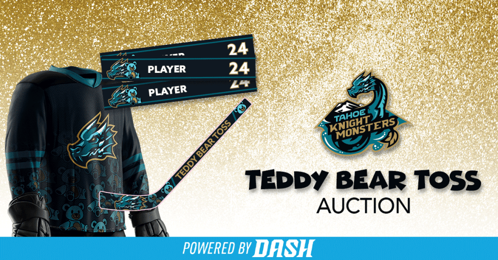 Tonight is teddy bear toss. After the Tahoe Knight Monsters score their first goal of the game everyone in the crowd throws stuffed animals on the ice. The stuffed animals are then collected and given to charity. I am really excited for it. It is one of the best parts of hockey season. They will also be wearing specialty teddy bear toss themed jerseys for tonight’s game.