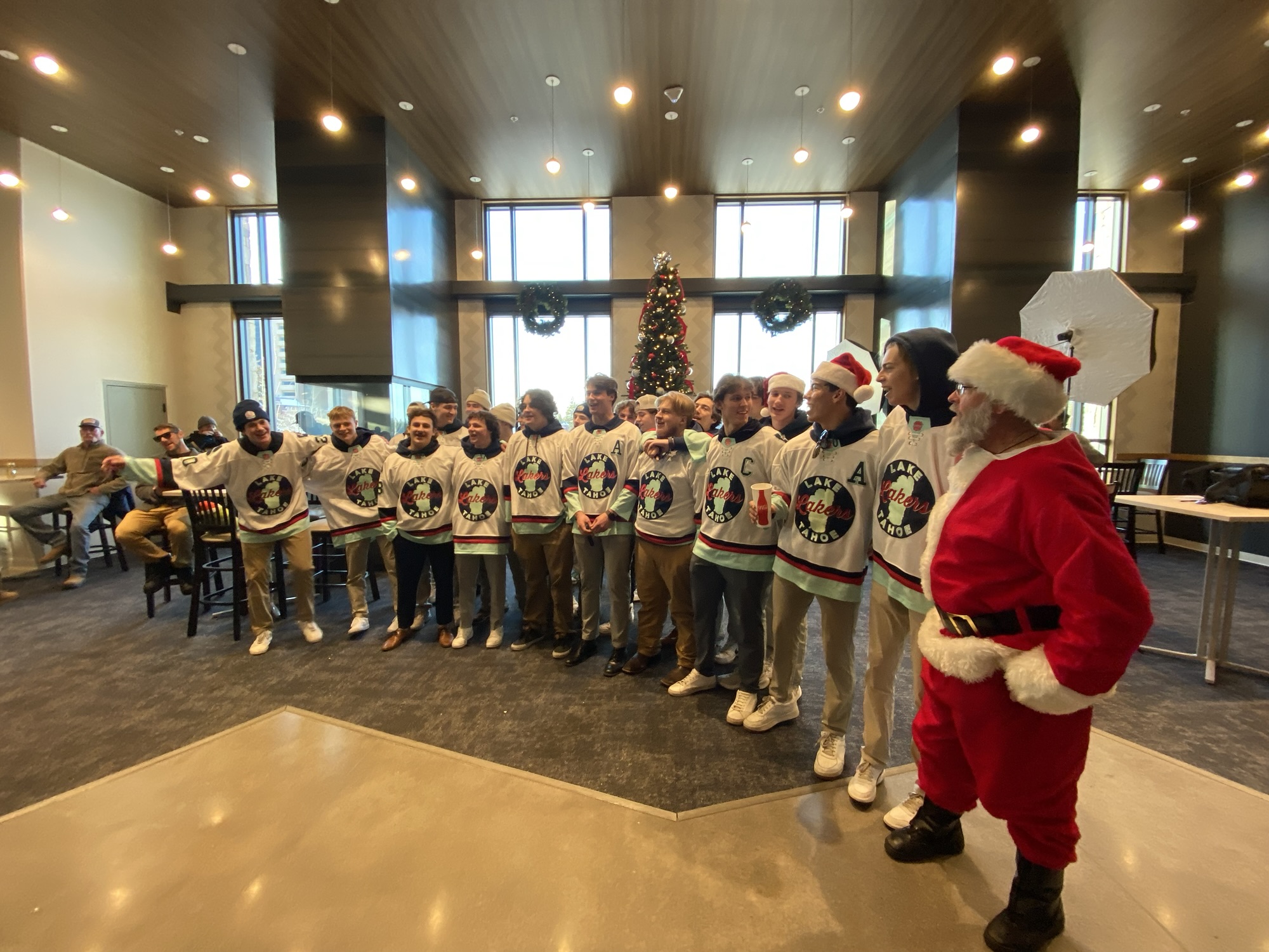 In between the first and second periods, the Lake Tahoe Lakers of the USPHL were singing carols on the concourse with Santa. I did also hear that they were doing this before the game. Either way it is always fi=un to see the holiday cheer.