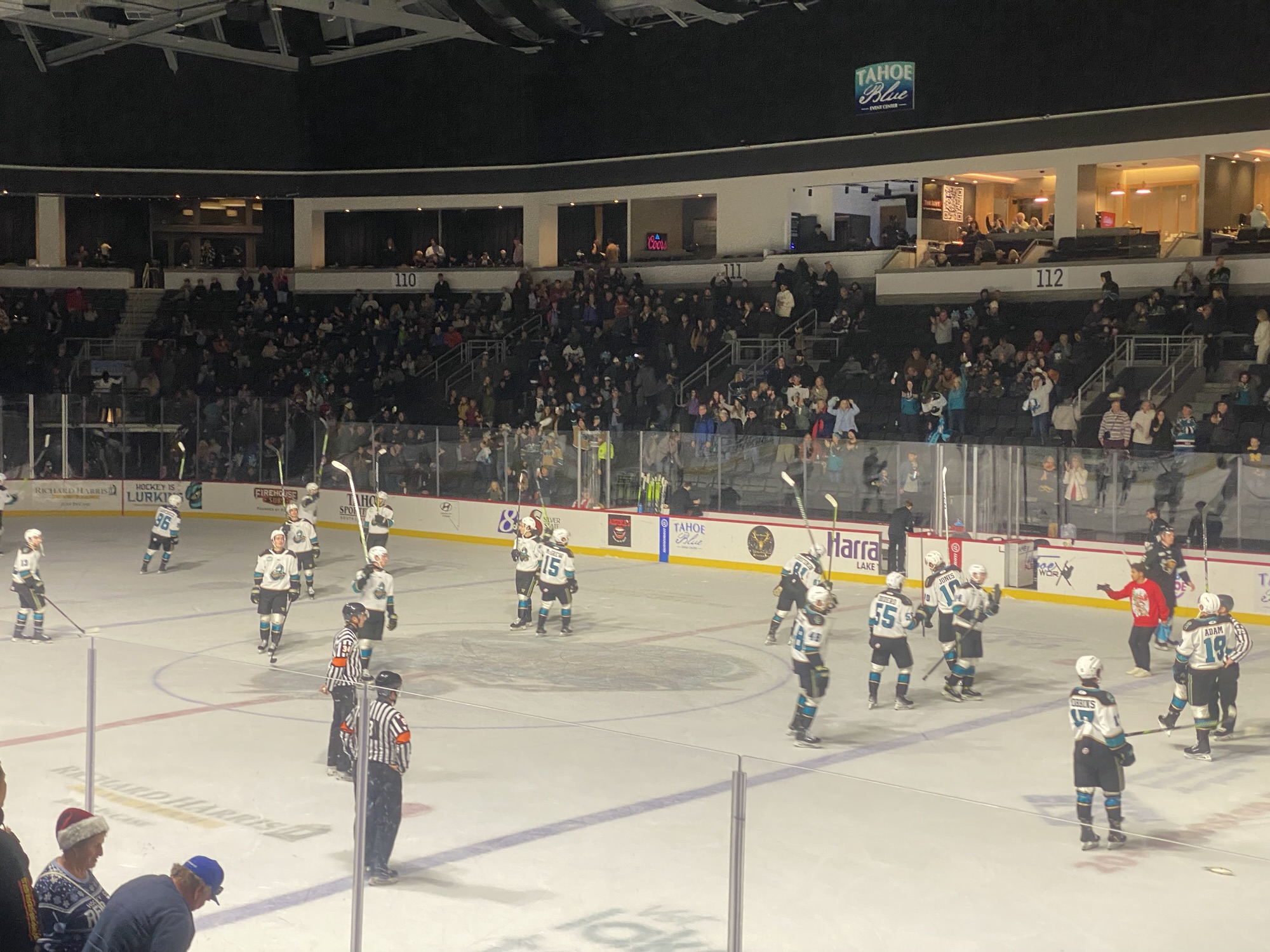 The Tahoe Knight Monsters took on the Utah Grizzlies on Sunday. Puck drop was at 3:00 PM. The theme for the game was winter wonderland. There was a toy drive at the game. Everyone who donated to the toy drive was entered into a drawing to win a team signed jersey. Santa was supposed to make appearances Saturday and Sunday. The Knight Monsters announced Saturday by text message that Santa was not going to make it to either game due to the weather. He was able to show up on Sunday. The game was at the Tahoe Blue Event Center in Stateline, Nevada. It was the twenty third game of the season. The Tahoe Knight Monsters were coming off of a 5-2 victory over the Utah Grizzlies. The Knight Monsters were on a six game winning streak. The Tahoe Knight Monsters had a record of 14-6-2. The Knight Monsters were in 8th place in the ECHL. The Knight Monsters were 3rd in the Western Conference and 2nd in the Mountain Division. The Utah Grizzlies are the ECHL affiliate of the Colorado Avalanche. The Grizzlies played twenty two games. The Grizzlies were coming off of a 2-5 loss to the Tahoe Knight Monsters. The Grizzlies were on a twelve game losing streak. The Grizzlies had a record of 5-15-2. The Grizzlies were in 28th place in the ECHL. That is second to last. The Grizzlies were in 14th place in the Western Conference which is also second to last place. They were in 8th place in the Mountain Division which is last.
