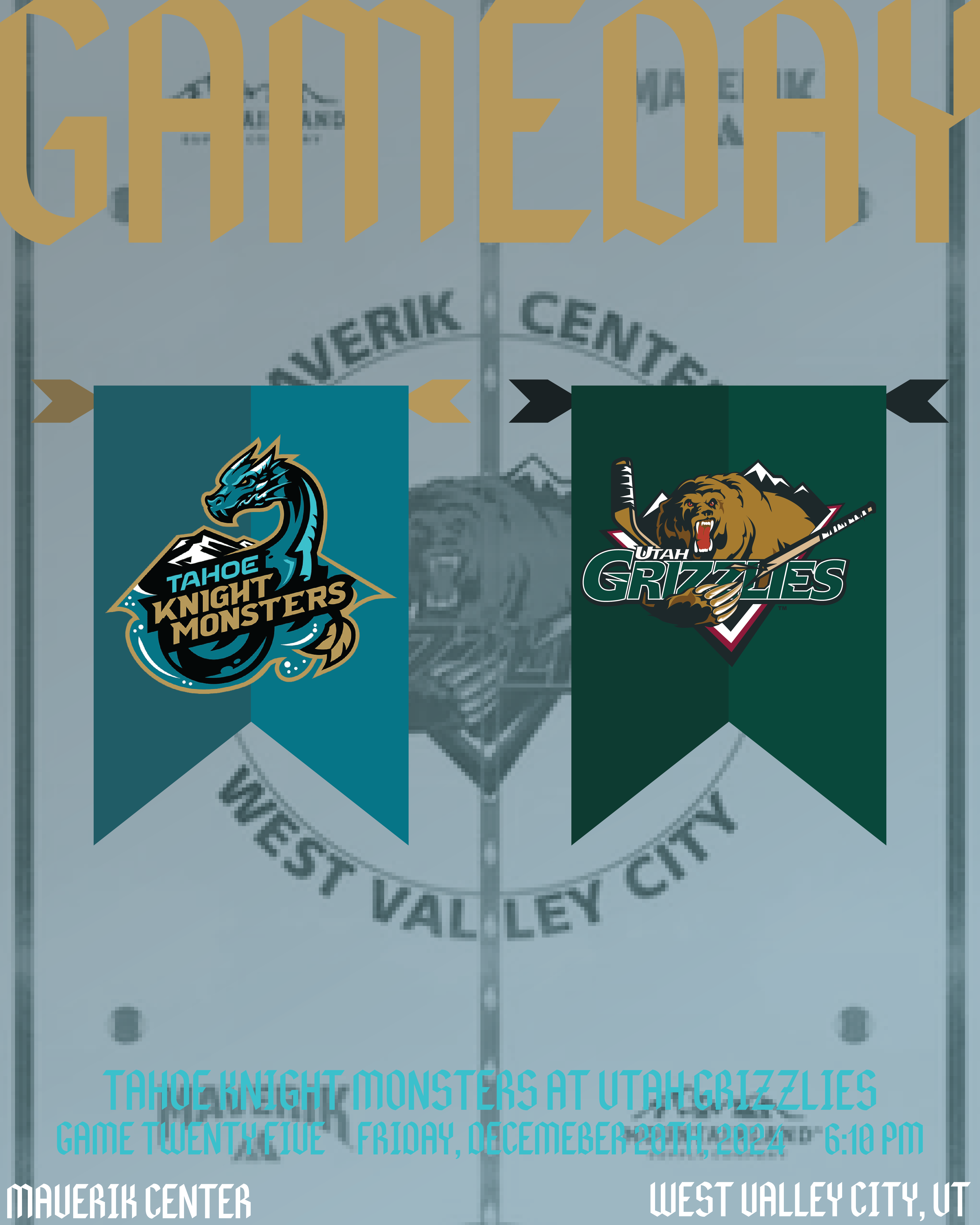 This is the Tahoe Knight Monsters 25th game of the season. The Tahoe Knight Monsters are the Vegas Golden Knights ECHL affiliate. They are coming off of a 7-6 overtime victory over the Utah Grizzlies. The Knight Monsters are on a eight game winning streak. The Tahoe Knight Monsters have a record of 15-6-2. The Knight Monsters are in 6th place in the ECHL. The Knight Monsters are 3rd in the Western Conference and 2nd in the Mountain Division. The Utah Grizzlies are the ECHL affiliate of the Colorado Avalanche. The Grizzlies have played twenty four games. The Grizzlies are coming off of a 6-7 overtime loss to the Tahoe Knight Monsters. The Grizzlies are on a fourteen game losing streak. The Grizzlies have a record of 5-16-3. The Grizzlies are in 28th place in the ECHL. That is second to last. The Grizzlies are in 14th place in the Western Conference which is also second to last place. They are in 8th place in the Mountain Division which is last.
