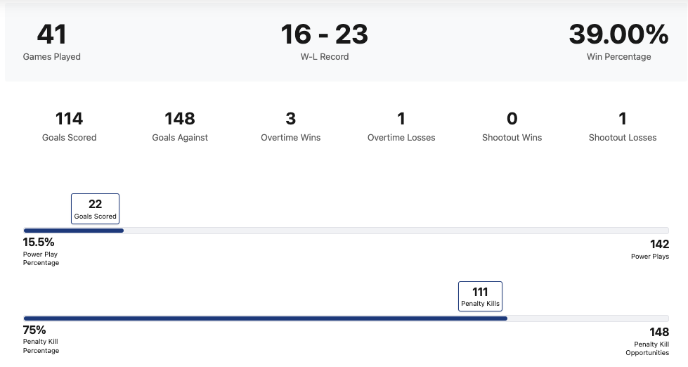 | Tahoe Golden Monsters | 44 | 26 | 15 | 4 | 160 | 145 | +15 | 56 |