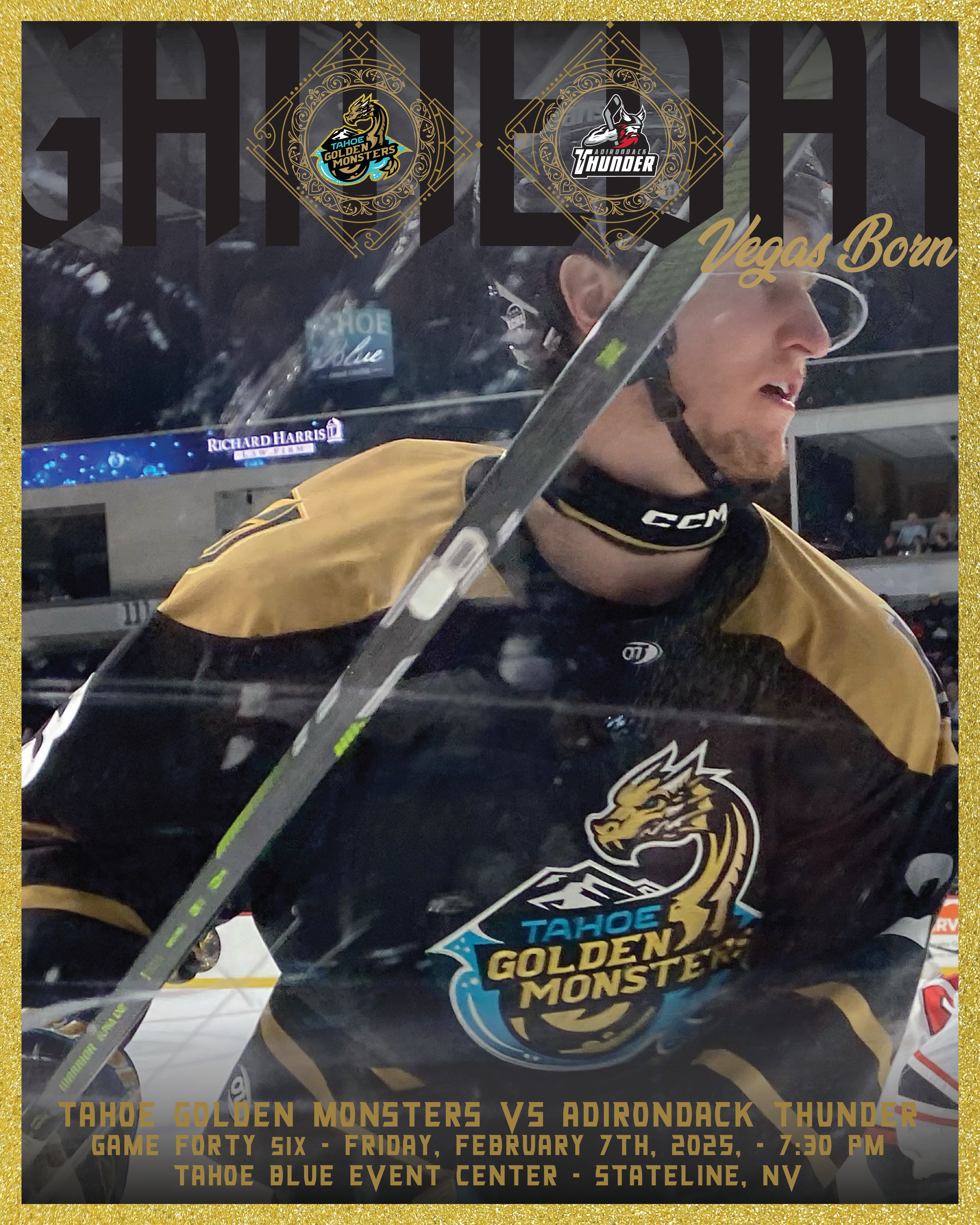 This is the second of three games for the Tahoe Golden Monsters against the Adirondack Thunder. This is the second game of affiliate weekend. The Golden Monsters are at the top of the Western Conference. The Adirondack Thunder are at the bottom of the Eastern Conference. The Tahoe Golden Monsters are third in the ECHL Western Conference Mountain Division. They are two points away from the top of the division. A win tonight could put them tied for the top of the division. Will the Golden Monsters win back to back games? Will the Adirondack Thunder get a comeback win?